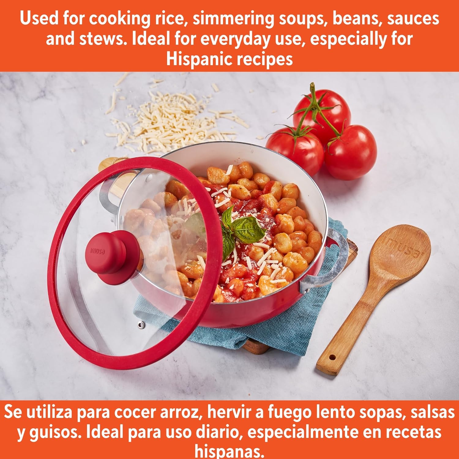IMUSA 6.9qt Aluminum White Ceramic Caldero with Glass Lid & Silicone Rim, Red