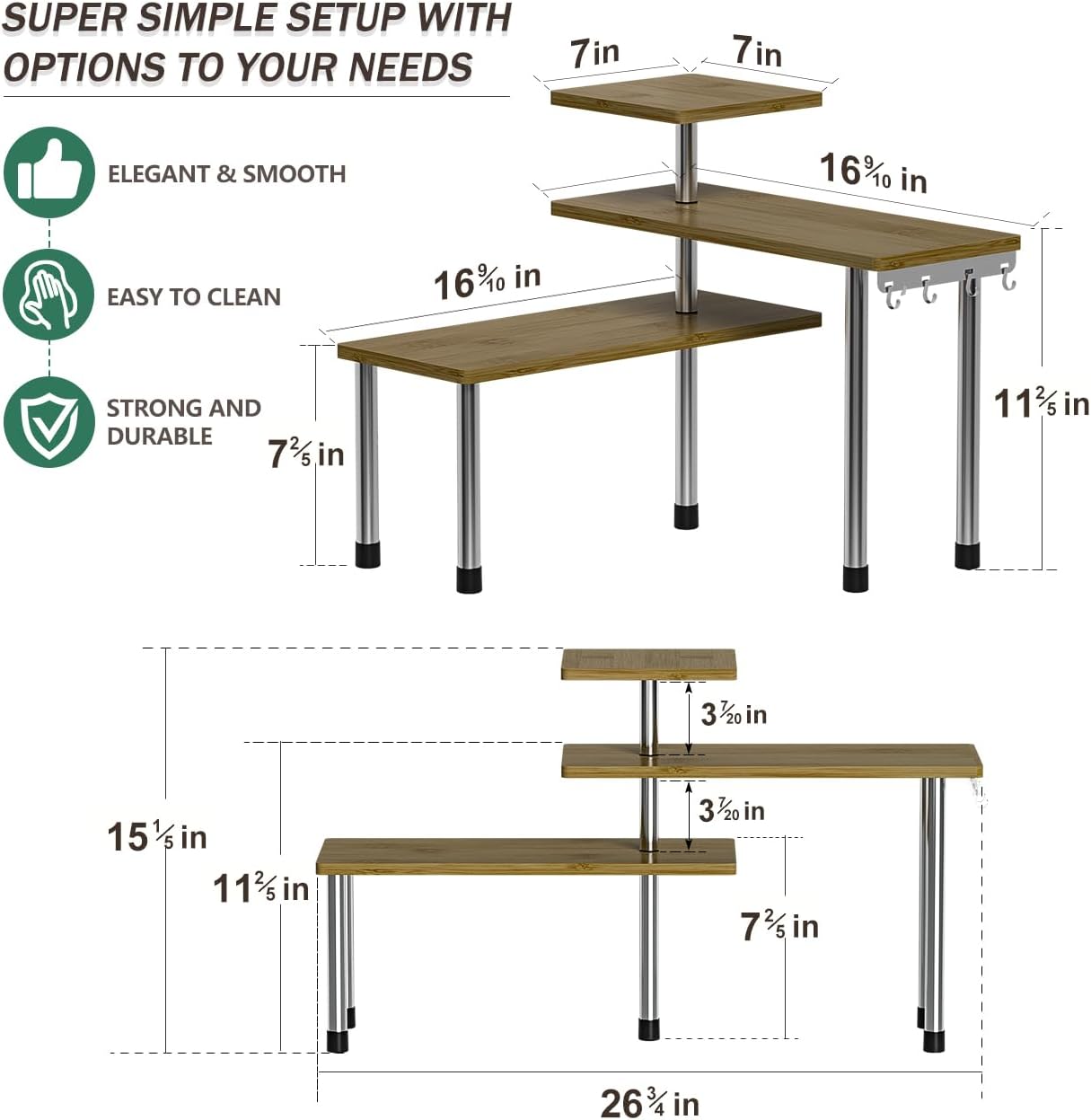 ZHWS Kitchen Corner Shelf Countertop Organizer - 3 Tier Bamboo & Metal Kitchen Organization Plant Stand Living Room Office, Spice Rack On Counter Shelves, Antique