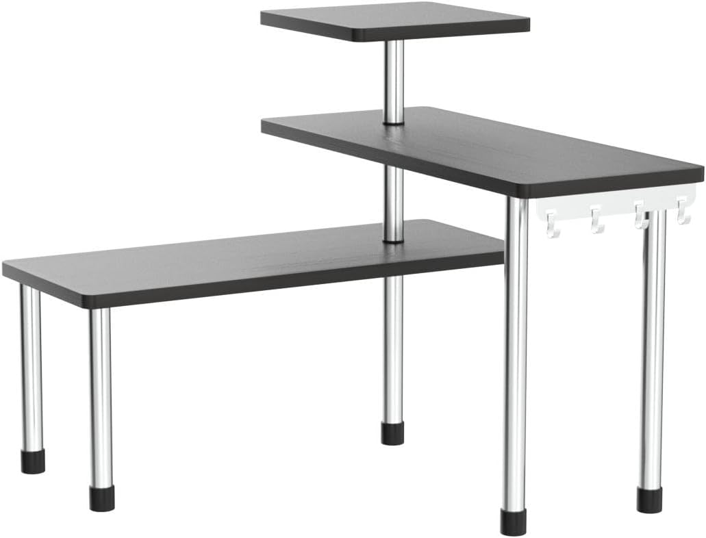 • SAVE MORE SPACE: The creative storage rack takes up minimal space, but gives you a lot of extra storage space; add about 20% more counter space to small spaces; can be used on office desktops, Bookcase, kitchen counter tops, plant display stands, etc.