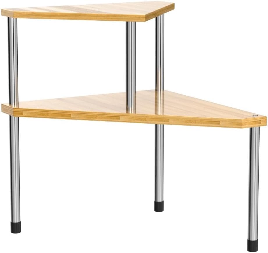 Weenson Bathroom Organizer Countertop Corner Shelf – 2 Tier Bathroom Organization Bamboo Spice Rack Kitchen Countertop Organizer Space Saving Storage Shelves Living Room Office Home Decor