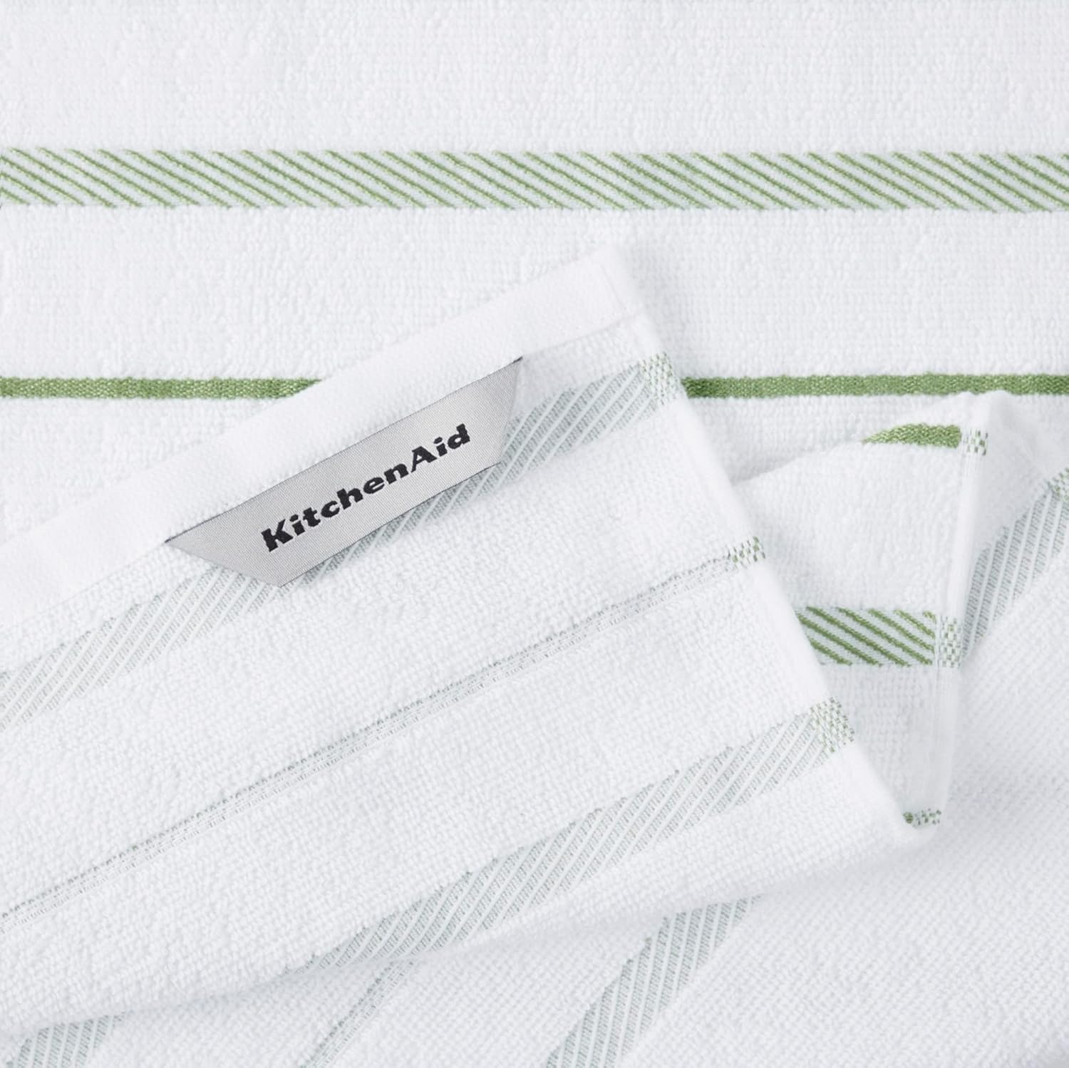 KitchenAid Albany Kitchen Towel 4-Pack Set, Matcha Green/White, 16"x26"