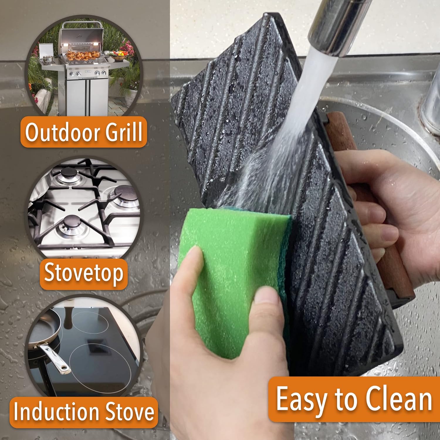 - UNCO cast iron grill press is a professional indoor and outdoor grill tool created for cooking enthusiasts and chefs. The grill press can be used on various surfaces, including grills, griddles, flat tops, teppanyaki, skillets pans, and induction stoves, allowing you to enjoy delicious dishes in the kitchen, restaurant, or while camping.