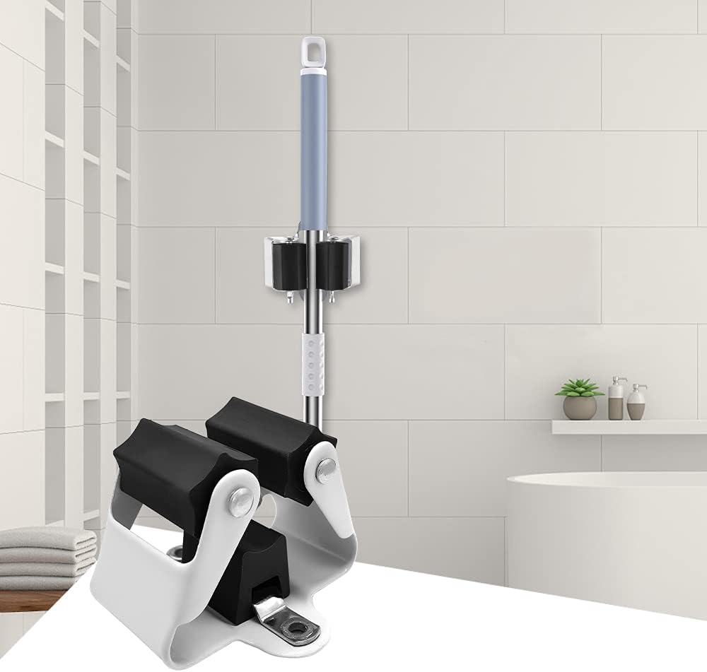 - EASY TO USE: Because mop broom holder wall mounted is made of 0.7mm thick metal material instead of 0.5mm as most of the ones on the market, you don’t have to worry about deformation even if you use it indoors or outdoors for a long time.You can slide the broom in and out with one hand. Unlike plastic mop holders with spring-loaded rollers, this broom organizer wall mount has rubber rollers to hold the handles, allowing the handle to slide in from the front and be held firmly in place.