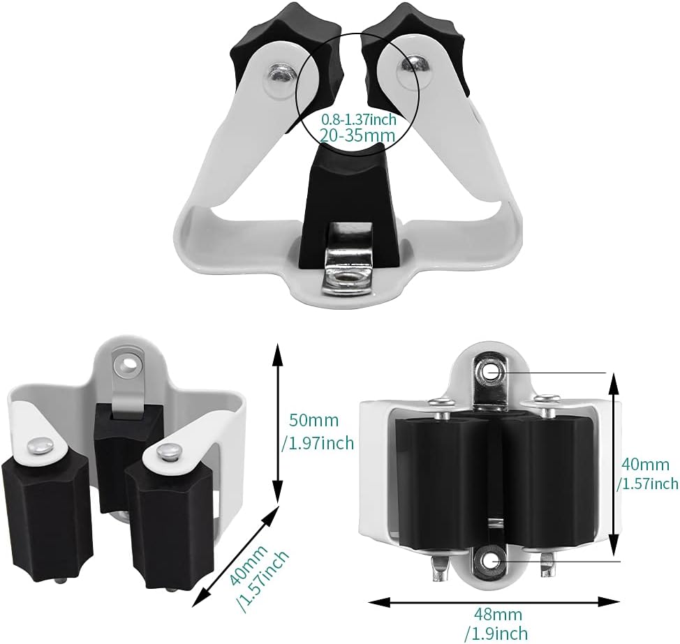 - SUPERB STABLE - Can be attached individually and placed individually.with fit diameter range from 18-35 mm(0.7-1.45 in) by lifting the mop handle, the broom wall mount rolling balls automatically adjust to each broom handle's thickness and grips it securely. silicone grip keeps tool handles away from slipping & scratching,broom holder can grip up to 8-10 pounds cleaning tools and garden tools