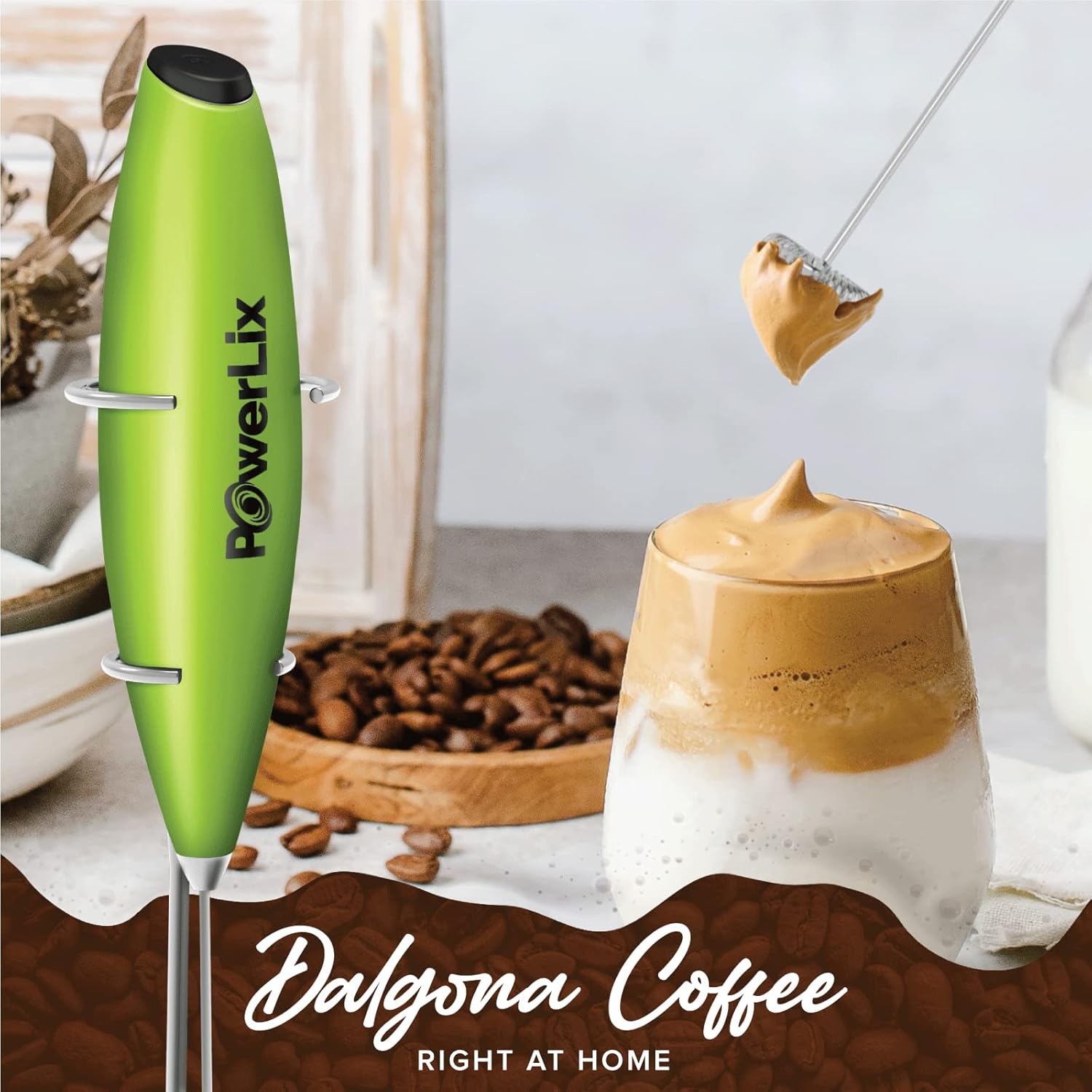 - Get Creamy Froth Quickly: PowerLix brings you its small, portable handheld milk frother for frothed milk. If you love your morning coffee with lots of froth and foam, then you certainly want to have PowerLix frothing wand at home or your café style cappuccino. It comes with a stand for easy storage and can be kept on the countertop.