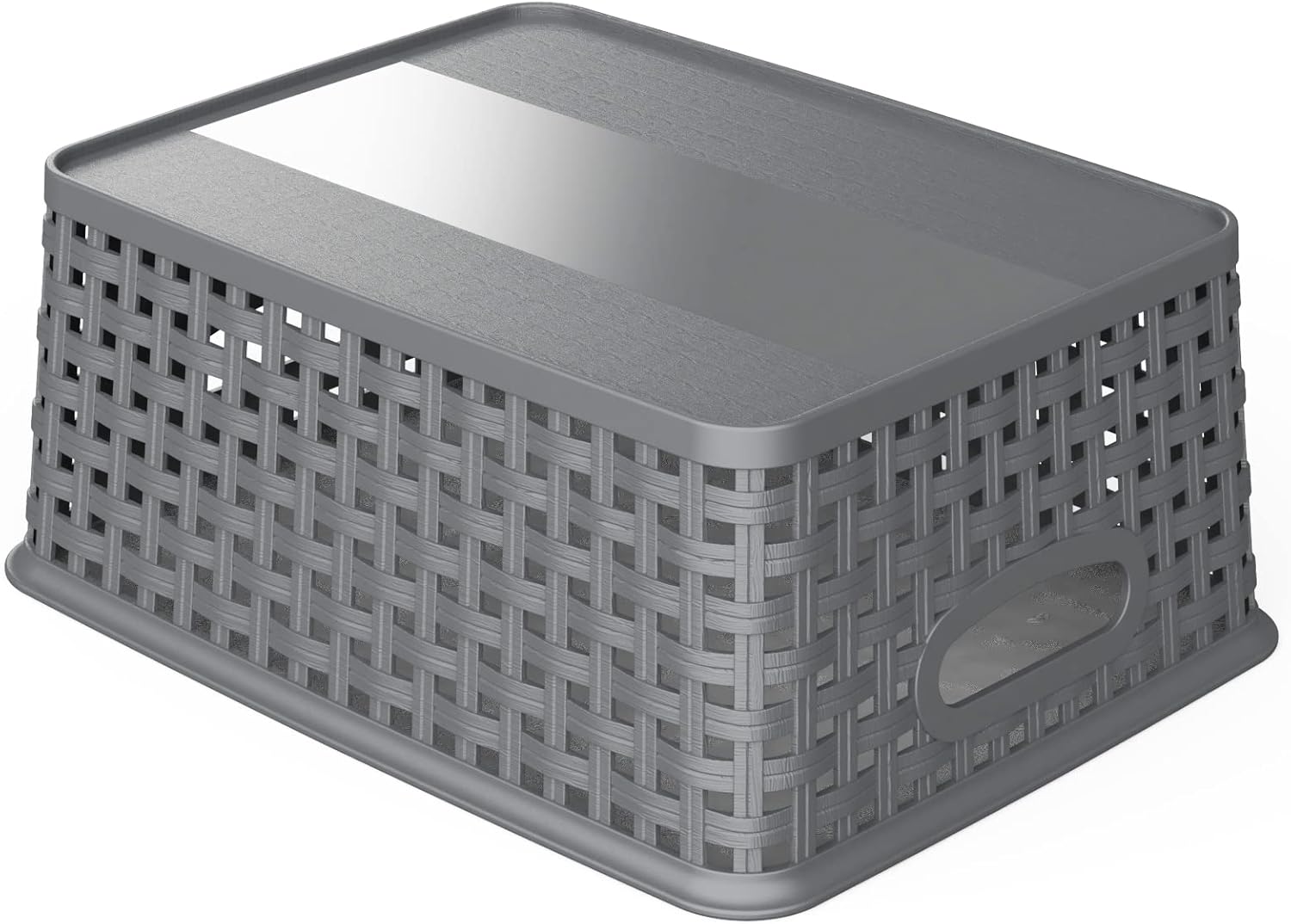 WYT Weave Storage Organizer Baskets, Grey 6-Pack Plastic Woven Baskets, 10.1" x 7.55" x 4.1"