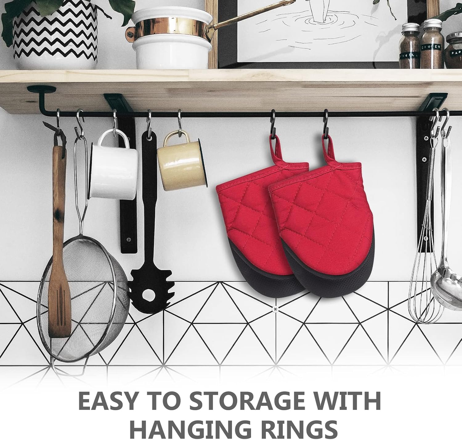- CONVENIENT TO USE AND STORE: With no-slip grip surfaces and hanging loop gloves, you can easily store the mini mitts in a drawer or hang on a hook.