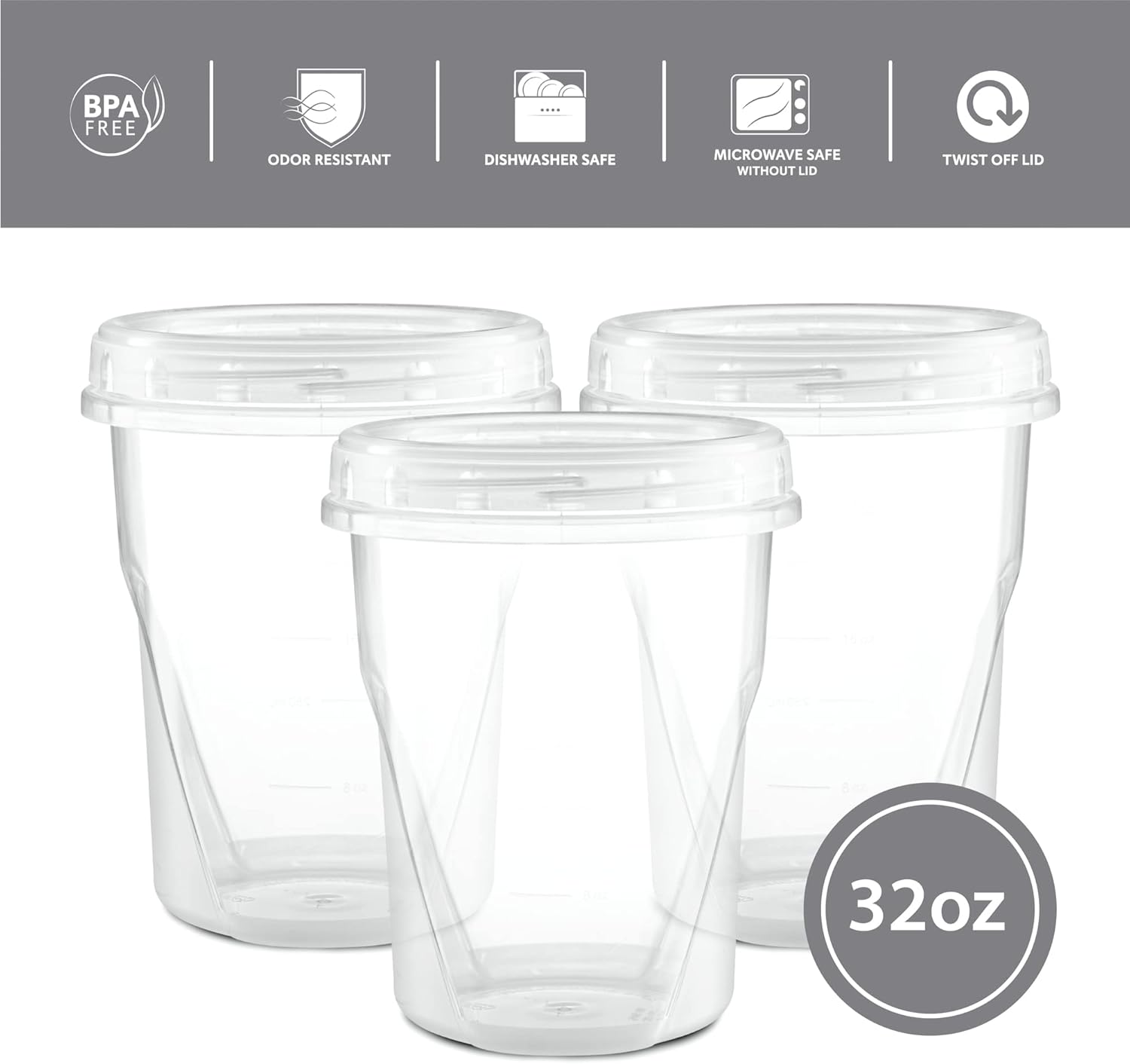 - 32 oz 10 Pack Twist Top Containers Clear bottom With Clear Top Twist on Lids Reusable, Stackable, Food Storage Freezer Container