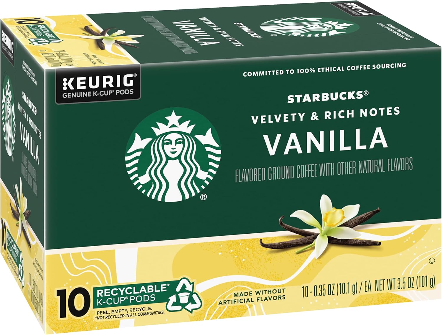 Starbucks Flavored Coffee K-Cup Pods, Vanilla Flavored Coffee, Made without Artificial Flavors, Keurig Genuine K-Cup Pods, 10 CT K-Cups/Box (Pack of 2 Boxes)