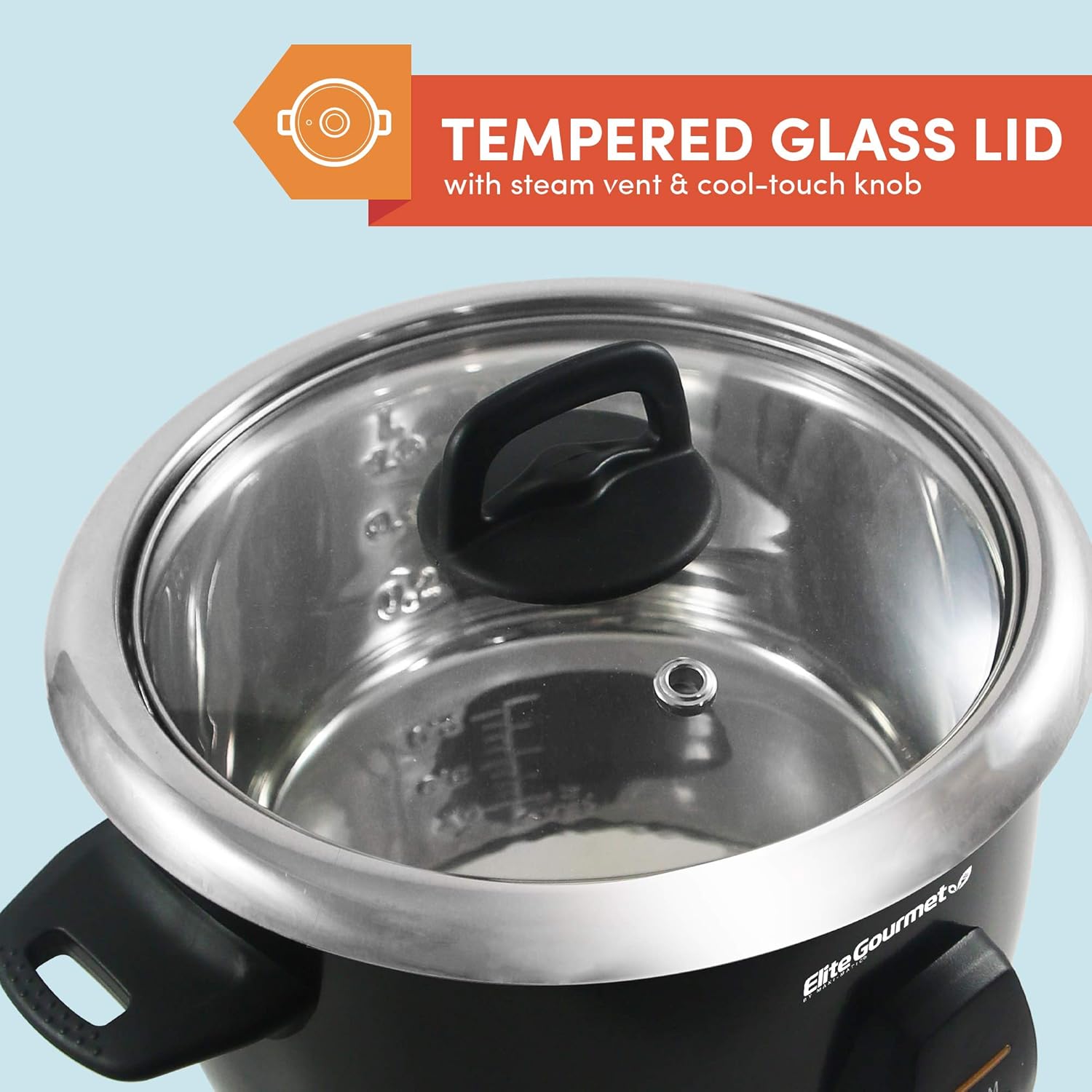 Elite Gourmet ERC2010B Electric Rice Cooker with Stainless Steel Inner Pot Makes Soups, Stews, Porridge's, Grains and Cereals, 10 cups cooked (5 Cups uncooked), Black