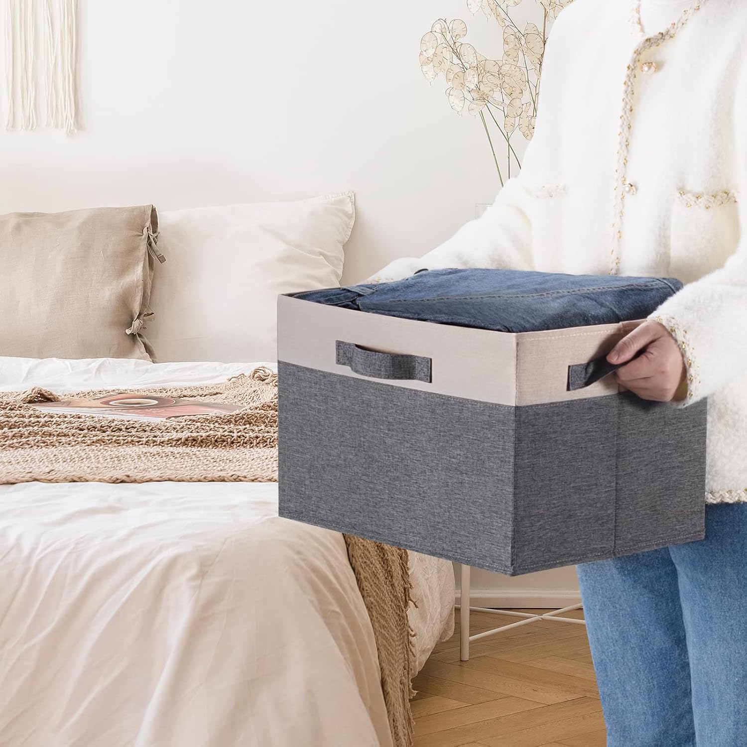 - 【PREMIUM QUALITY】Our closet storage bins are made of tear-resistant, high-quality cationic fabric with odorless, durable, and sturdy properties, which are 100 times stronger than non-woven fabric for durability, so they can be used for long periods of time. The organizer baskets are stitched with 3 handles, reinforced for support heavy loads without ripping