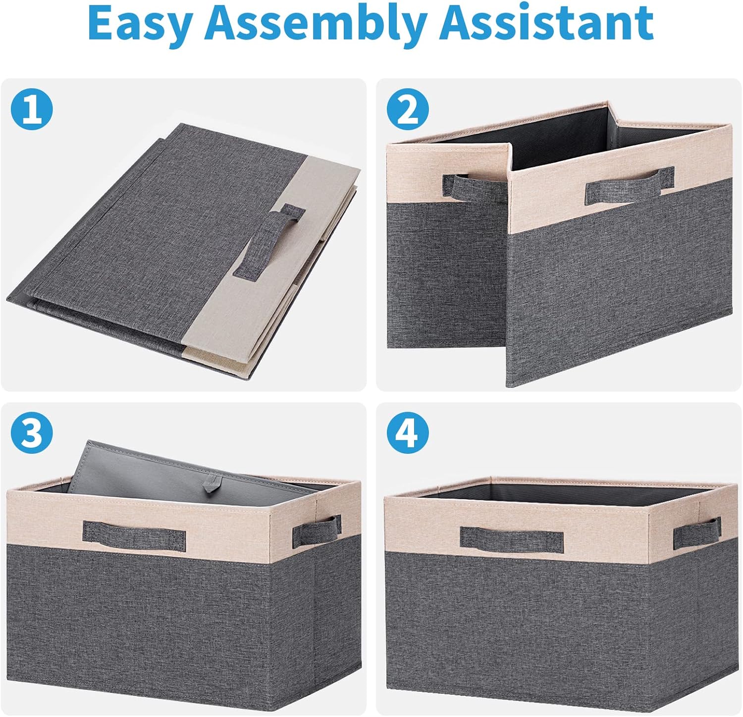 - 【EASY ASSEMBLY & COLLAPSIBLE】 Easily insert the bottom panels and shape these organizer baskets up for use. These collapsible storage bins could be fold flat for easy storage when not in use, saving space in your home, amazing solution for dorm room essentials, camper RV, apartment must haves