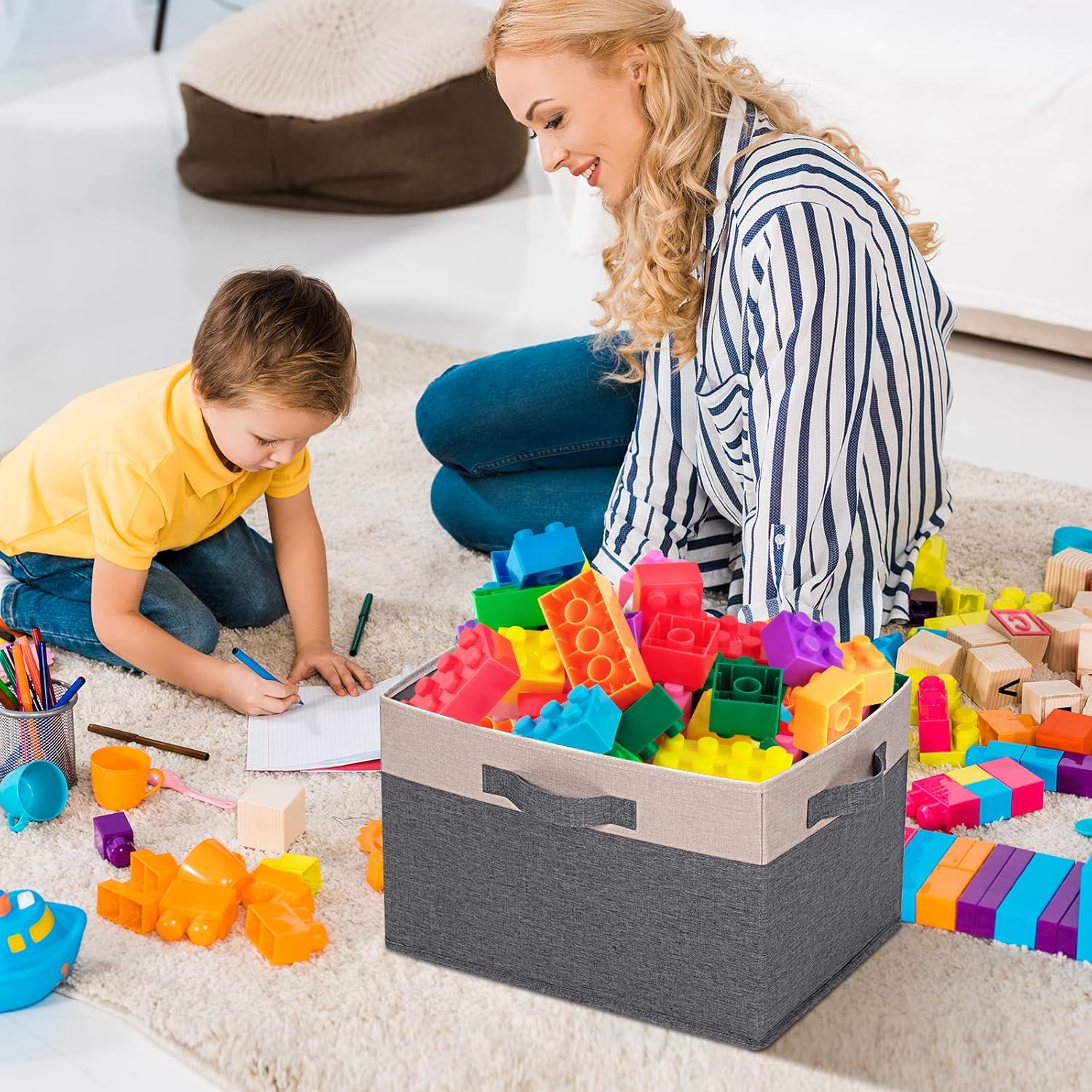 - 【STURDY STRUCTURE】 These fabric storage bins feature sturdy construction with hard cardboard inserts in the bottom and all sides to ensure that the bins stand upright and are stackable for durability. So, this storage bins is a must-have for organizing and storing your home, office, or nursery