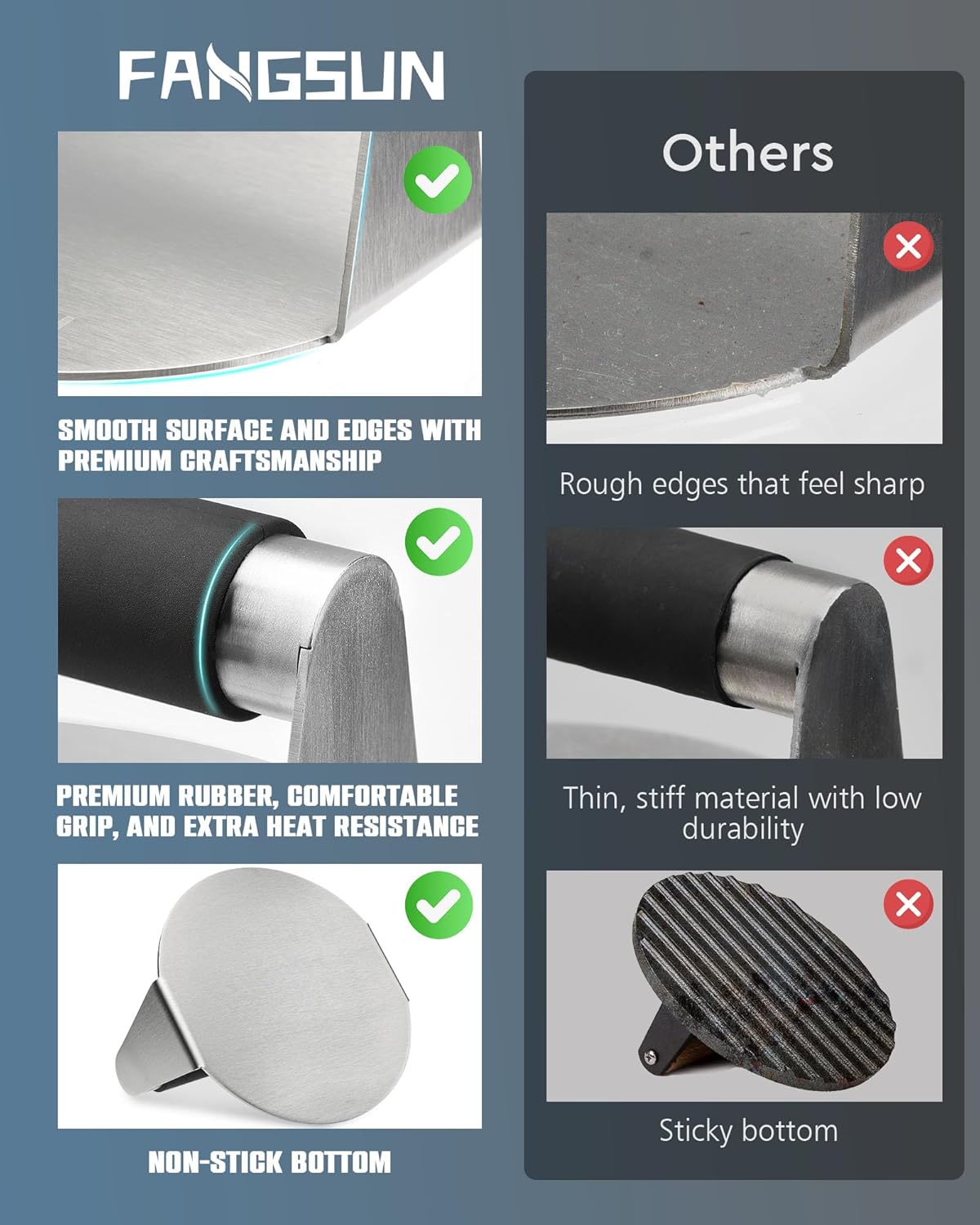 - Full Stainless Steel Material: Sturdy & Easy to Clean: Made of thick stainless steel, high temperature, not easily deformed, no rust, dishwasher safe. No worries about rusting and having to clean with brush like cast iron, save your cleaning time