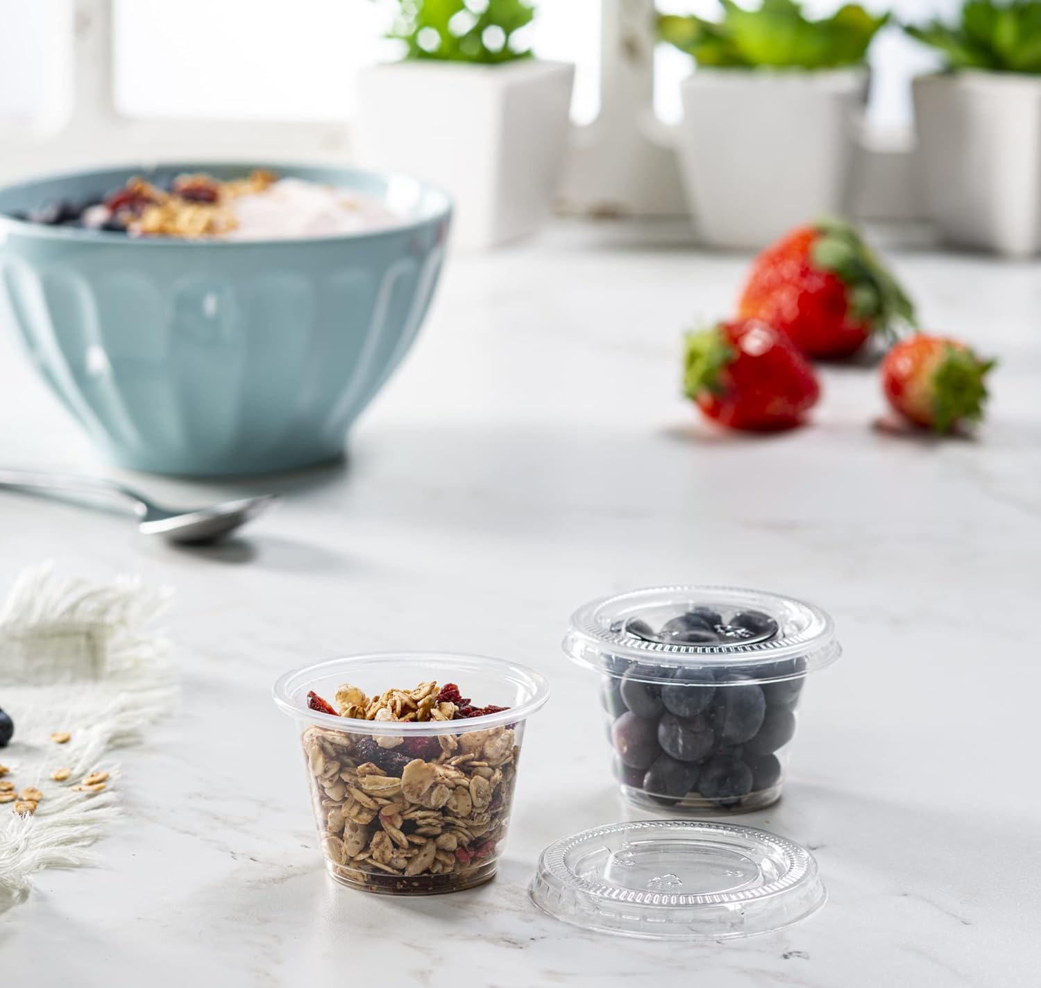 - Great use for Portion Cups, Meal Prep, Portion Control, Sauce Cups, Jello Shots, Condimens, Souffle Cups, Dressing, Slime, Small Containers, Medicine Cups, Sampling Container, Dips, Tastings, & Much more