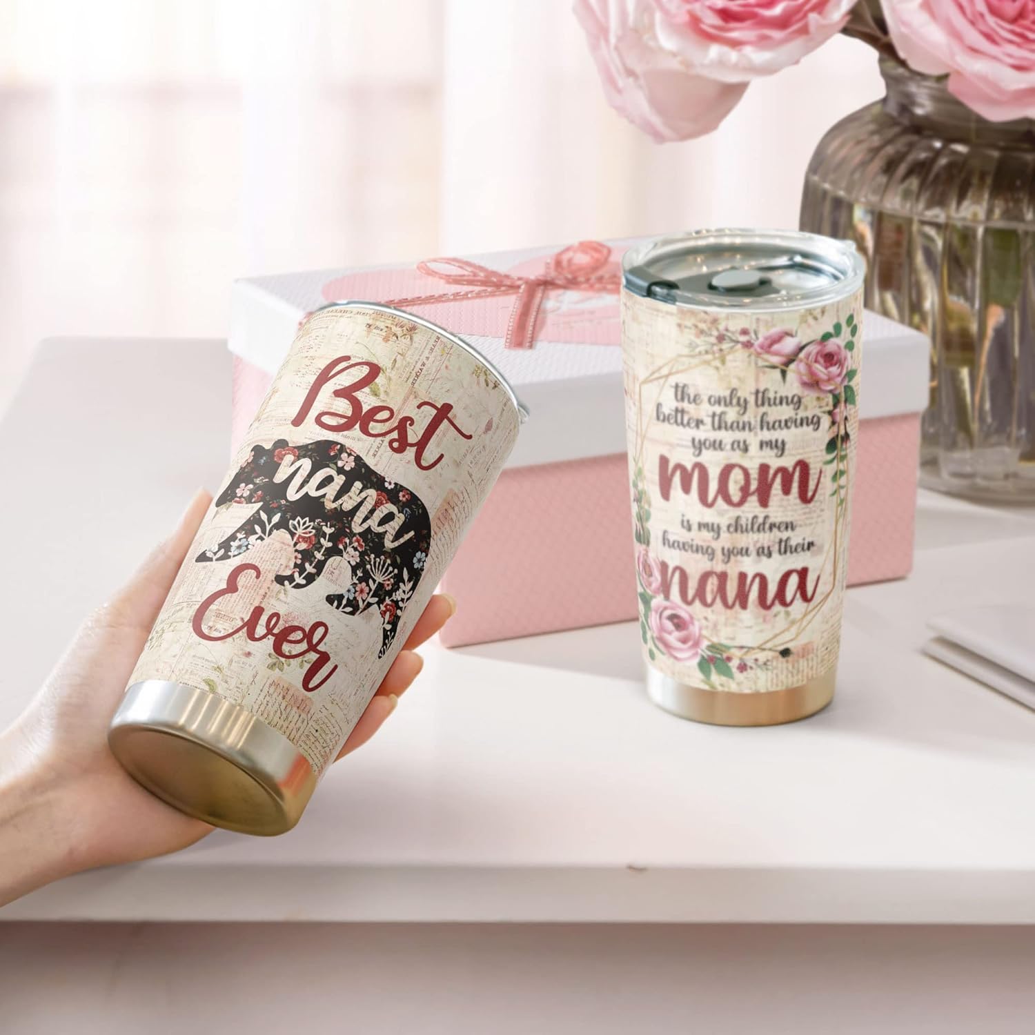 Macorner Mothers Day Gift for Nana & Mom From Daughter, Son for Grandma - Stainless Steel Bear Tumbler 20oz for Women
