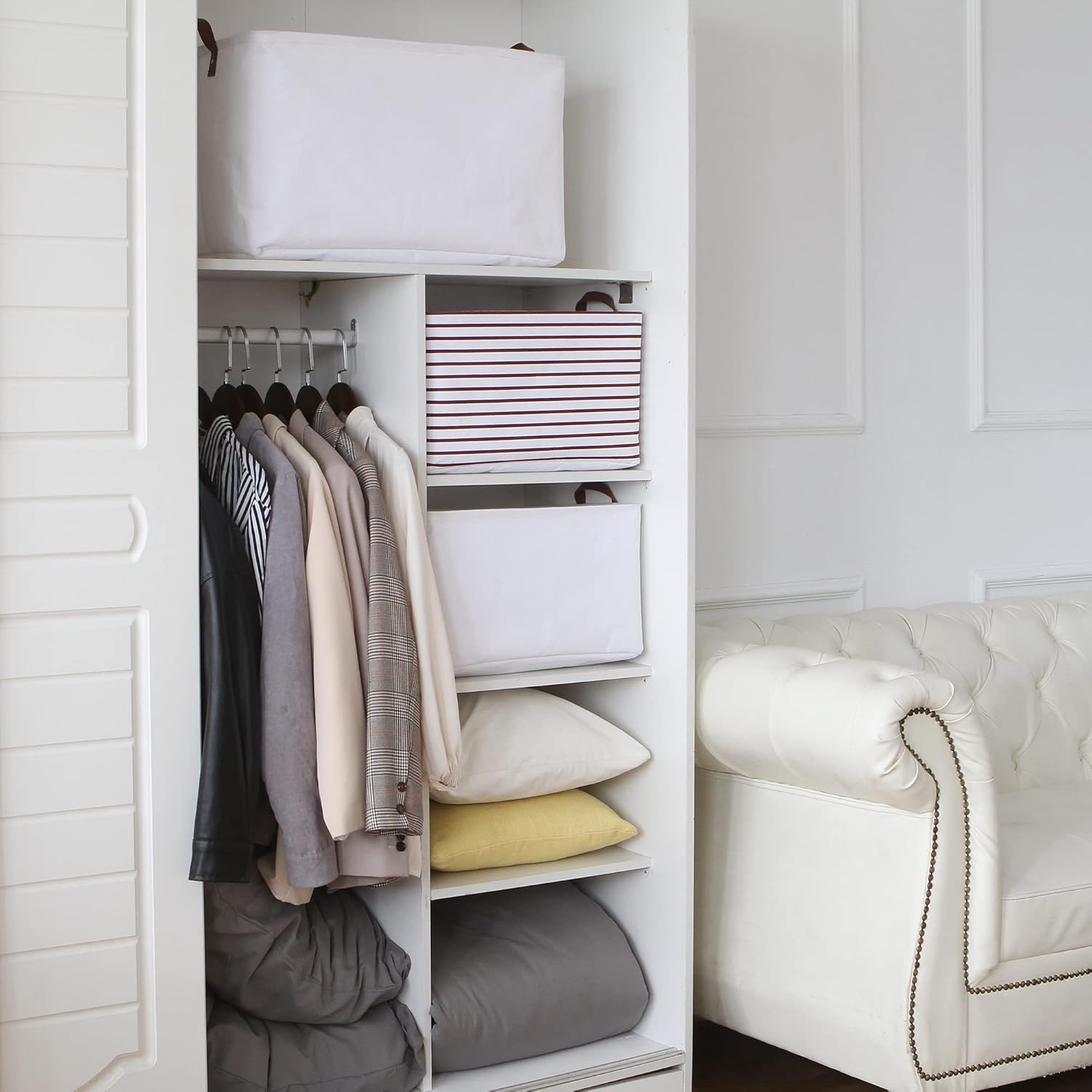Hinwo 70L Extra Large Storage Bins, Closet Organizers and Storage, Foldable Clothes Storage Baskets with Handles, Containers for Clothing, Blanket, Comforters, Toys, Bedding (White)