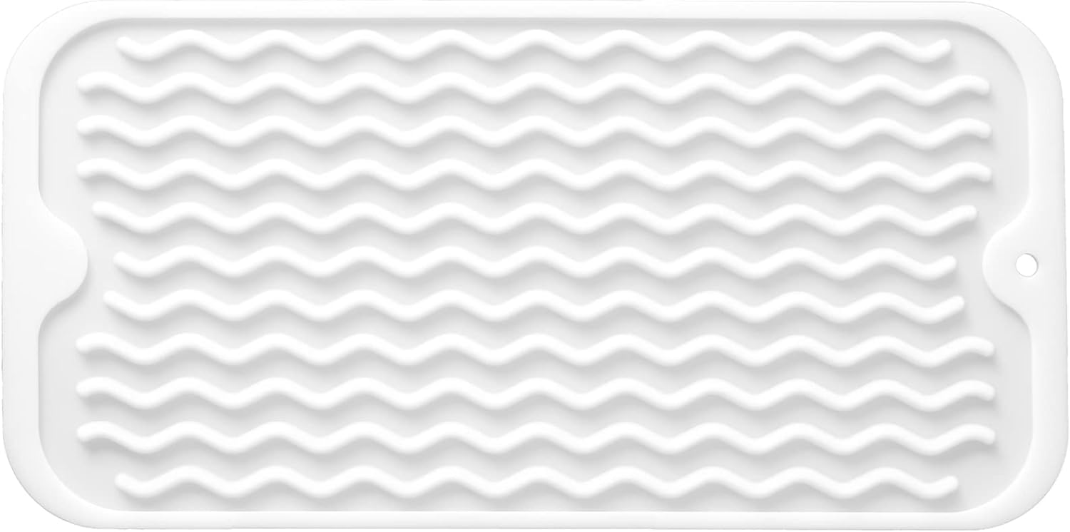 Silicone Dish Drying Mat for Multiple Usage,Easy clean,Eco-friendly,Heat-resistant Silicone Mat for Kitchen Counter or Sink,Refrigerator or Drawer Liner White S 12 inches x 6 inches