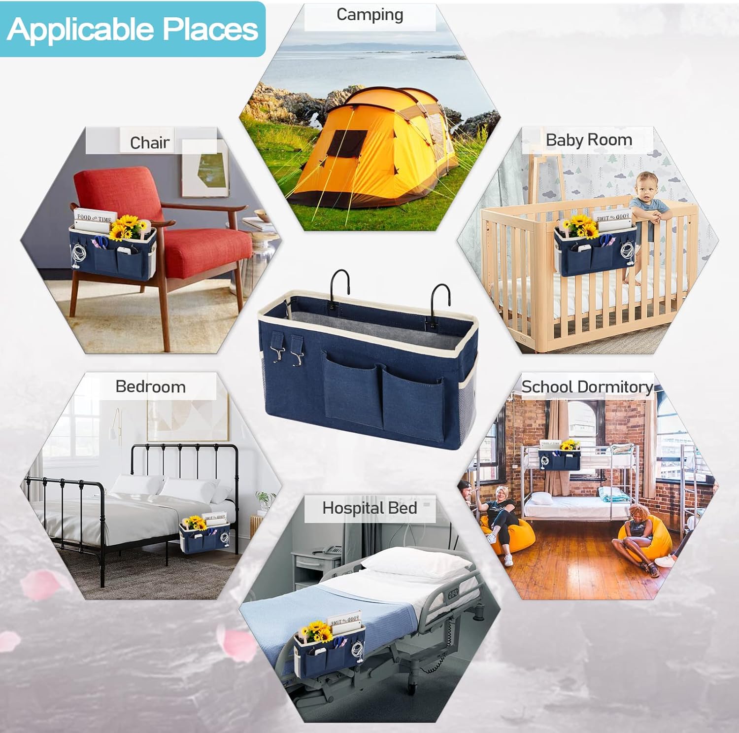 - Multi-Scene Use: The bedside storage bag is designed with flexibility, suitable for a variety of scenarios. Whether it's a bunk bed, chair arm, RV, home, living room, or college dormitory, it is an ideal choice. It can meet the storage needs of different environments, bringing great convenience to your daily life.