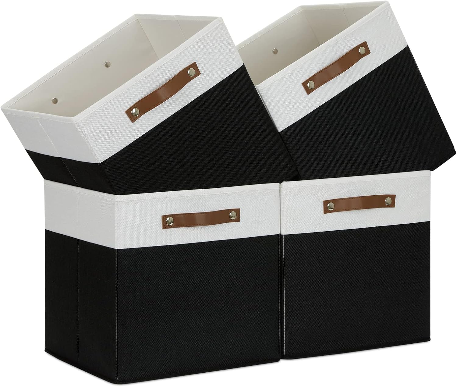 Temary Fabric Storage Bin 4 Pack Cube Storage Bin for Shelf Fabric Cube Storage Basket 13 Inch Cube Storage Bins Foldable Storage Cubes with Leather Handles(White&Black)
