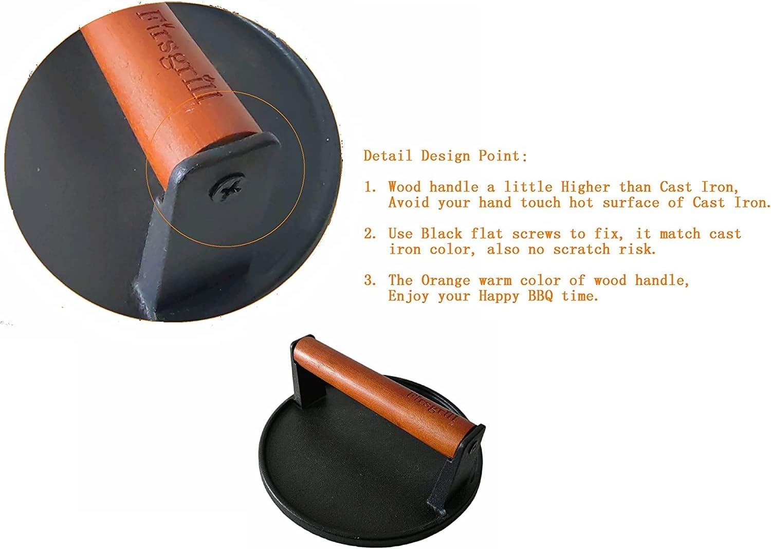 • 【LESS TIME COOKING, MORE TIME EATING】: Got people coming over, and want perfect, consistent bacon, quick? The Firsgrill signature iron grill press is 7.08-inch and presses down on your favorite thin meats to make them cook faster and more evenly.