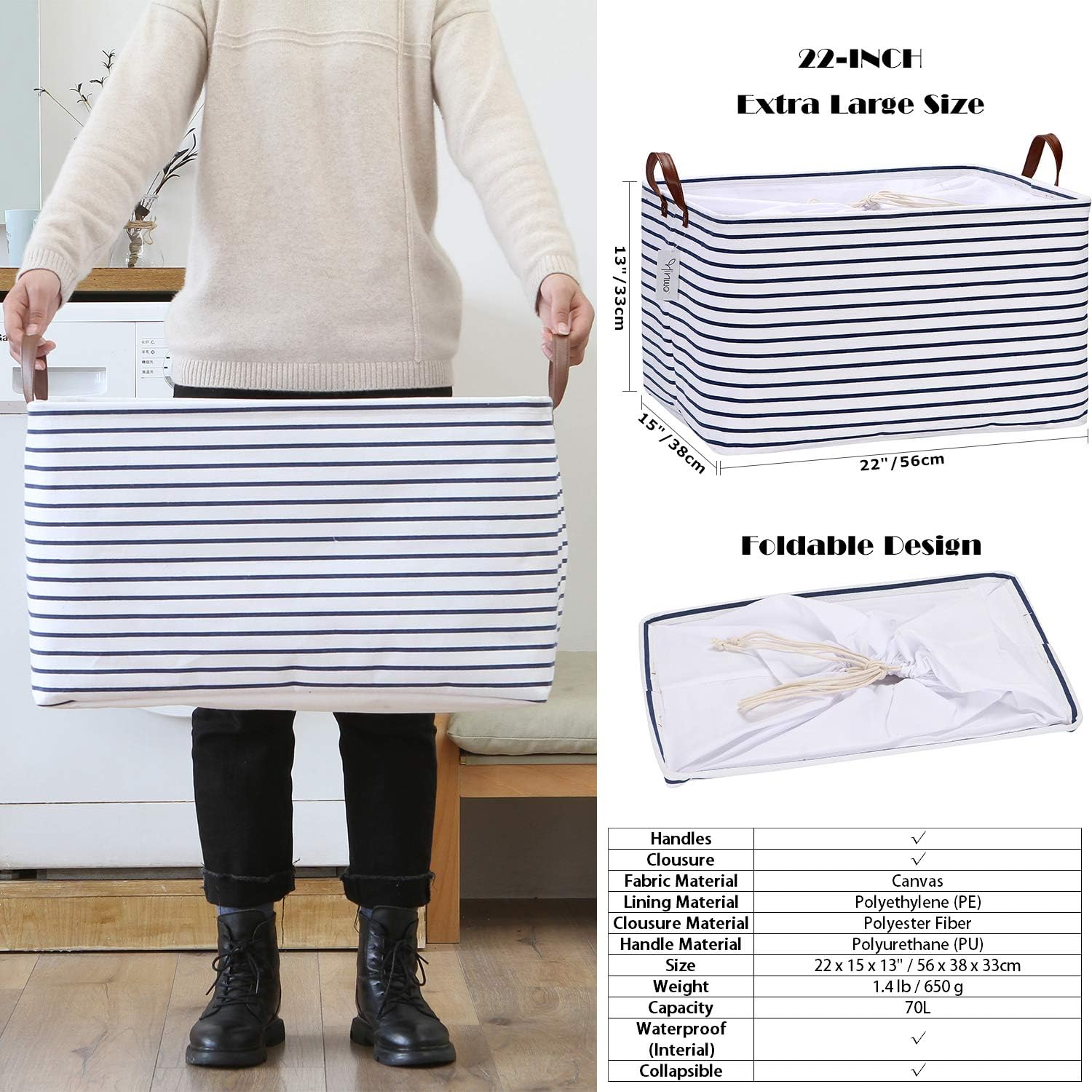 - Spacious Storage Capacity – The rectangle large storage bin measures 22 x 15 x 13” to fit most of closets and shelfs, and provides 70L spacious space for storing a variety of items such as blankets, comforters, clothes, toys and other daily odds and ends