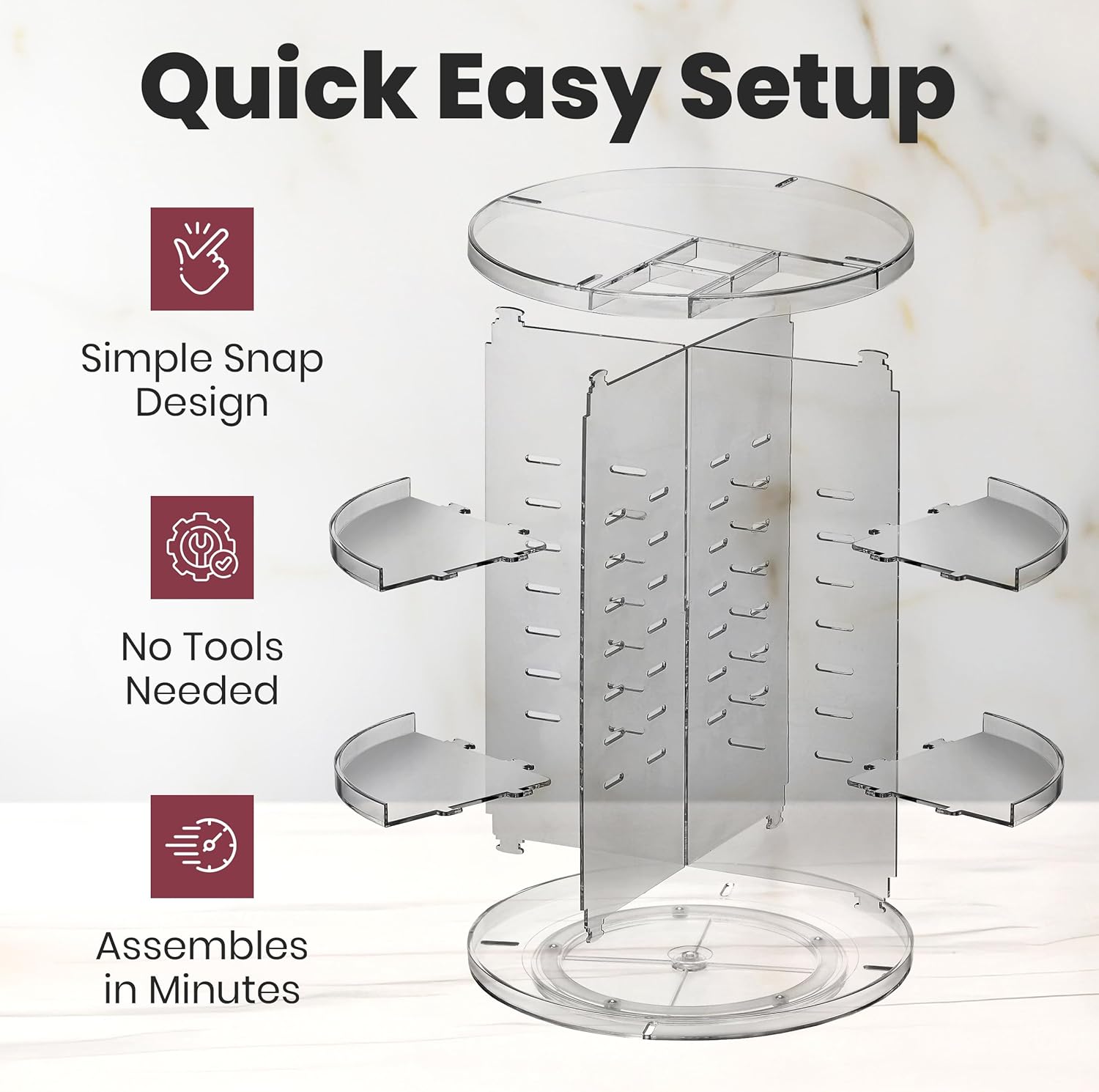 - STURDY AND DURABLE: Designed for durability, this revolving makeup organizer is constructed to withstand the weight of various cosmetic products, providing a stable and reliable storage solution