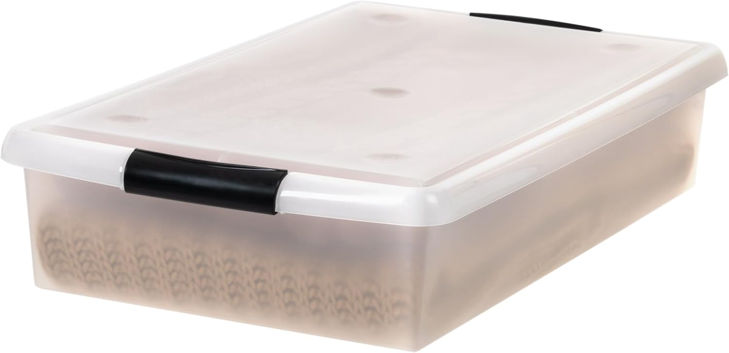 IRIS USA 40 Qt Plastic Under Bed Storage Nestable Organizer Bin Container with Secure Lids and Durable Buckles, 3-Pack, Under Bed Storage Containers for Clothes Shoes Bedding, Black/Clear