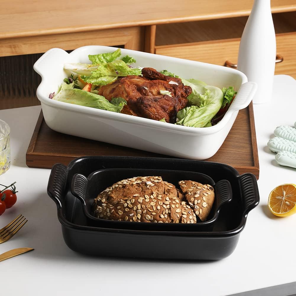 - Stylish Rectangular Baking Pans Set - The rectangular baking pans set is equipped with a double handle design for easy food transport from the oven to the table. It is also a charming decoration in your kitchen and dining table which may impress your guests!