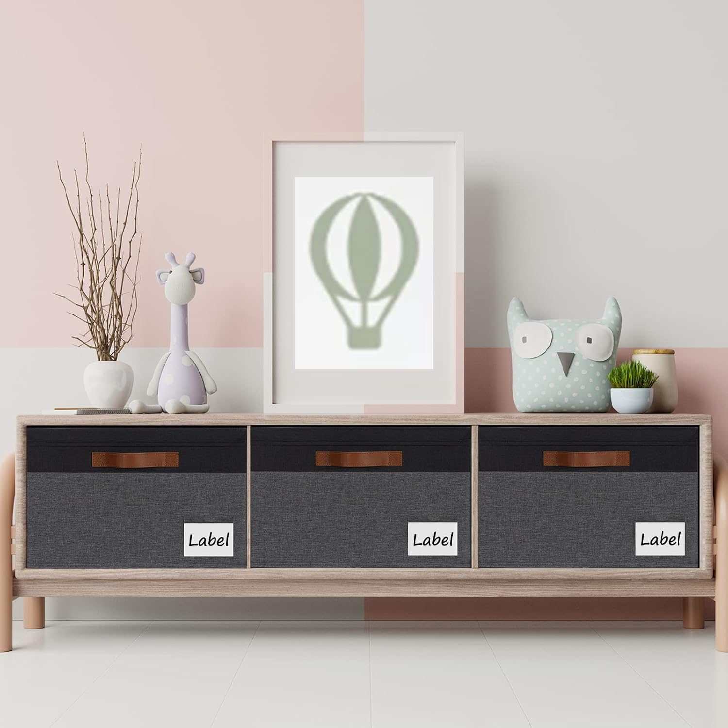 - LARGE DIMENSION: Set of 3, dimensions (each): 15(L) x 11(W) x 9.7(H) inch, storage capacity of the cube storage bins are 26L, which can hold a large number of items to organize your home or office. Each large storage bins with lids has a eye-catching label to classify the stored items. Perfect size and neutral color match most of your home decorations and styles while keeping your home organized