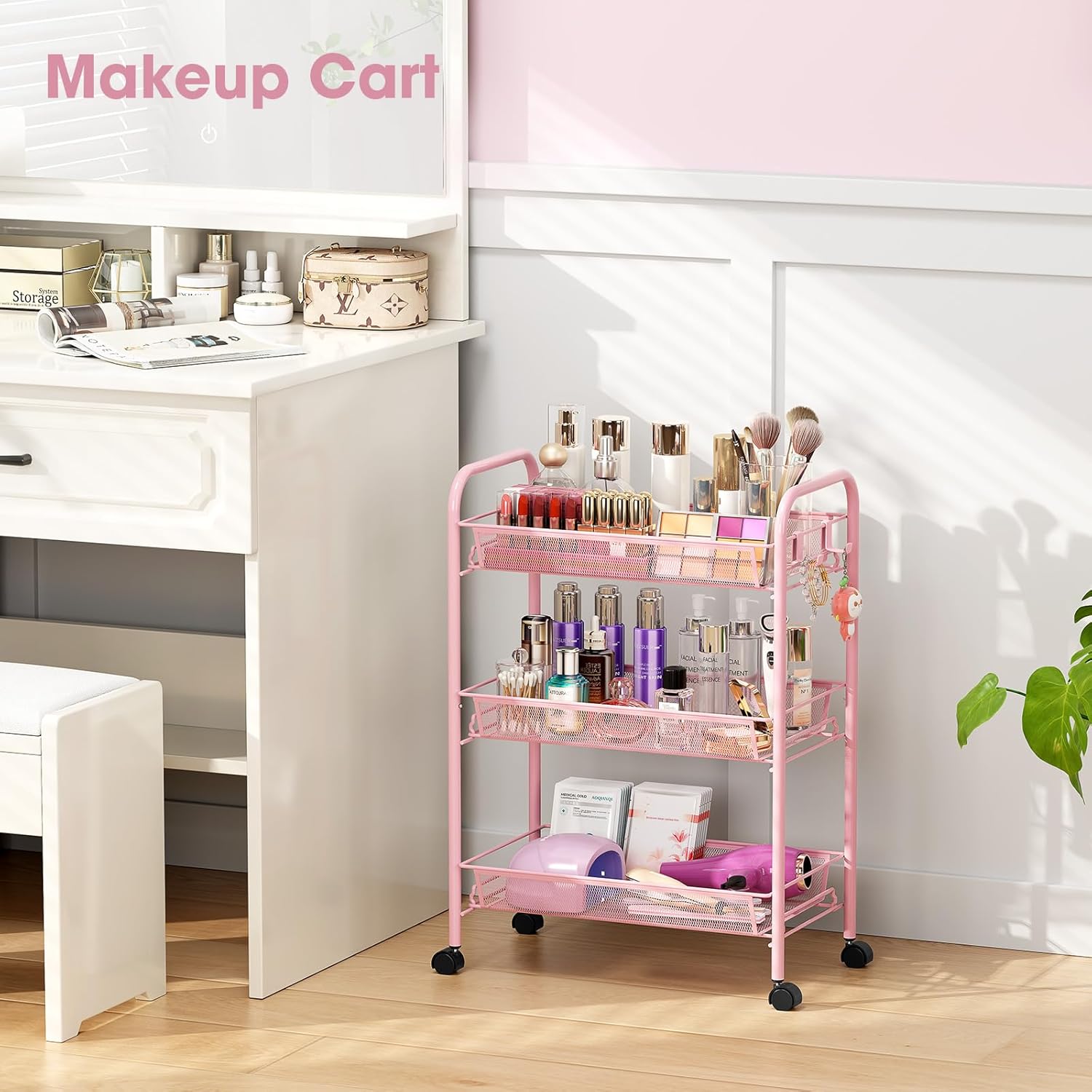 - 【Multi-Functional Use Across Spaces】 Ideal as a makeup organizer cart, bookshelf cart, or laundry cart on wheels. This 3-tier rolling cart provides ample storage for small spaces, transforming cluttered areas into tidy, functional environments.