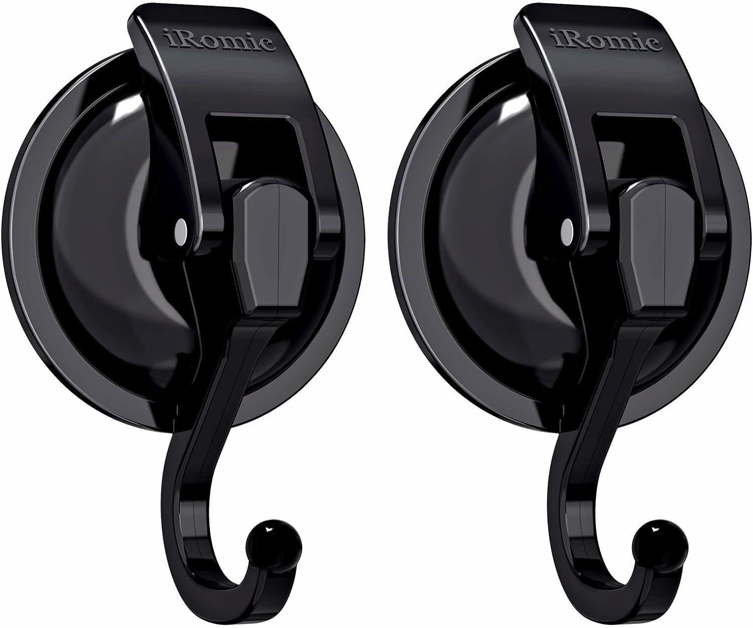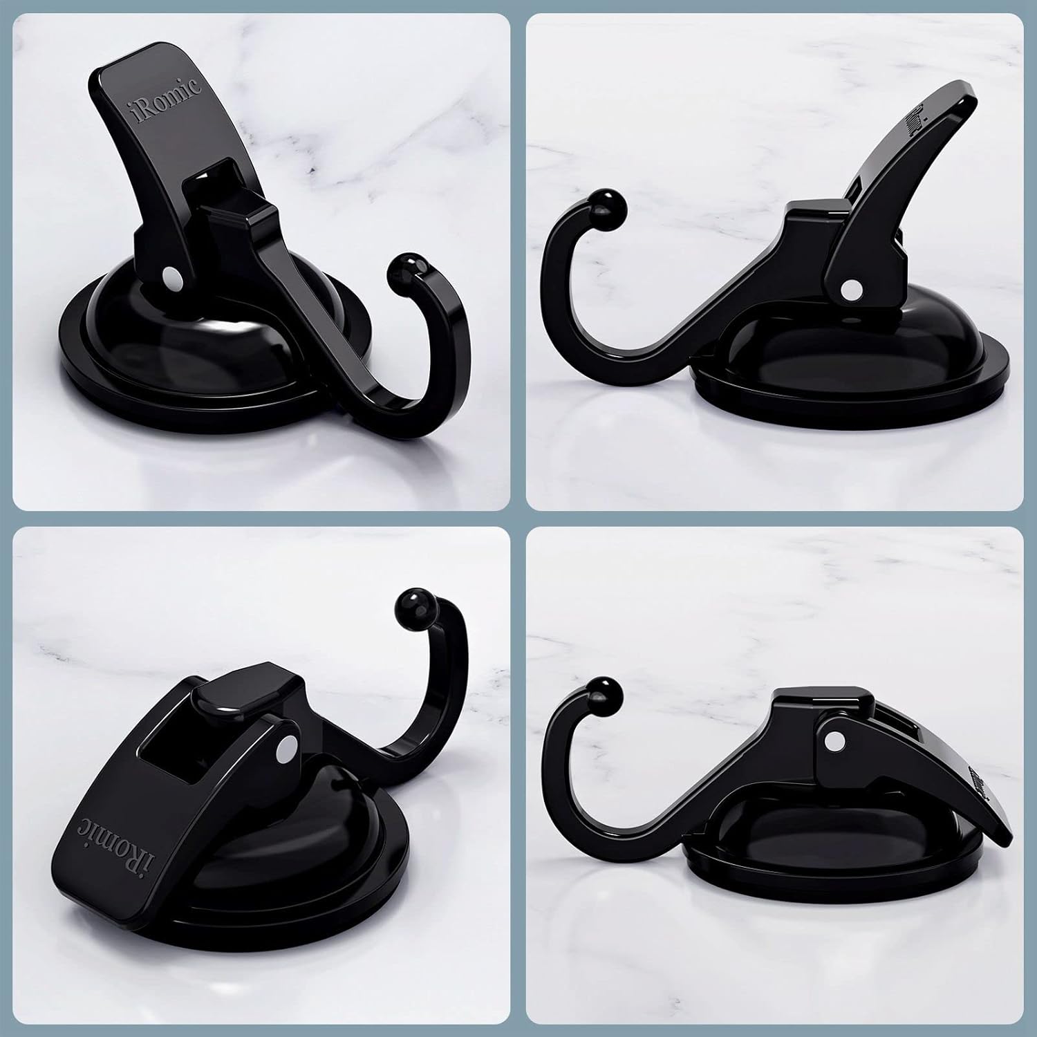 Heavy Duty Vacuum Suction Cup Hooks (2Pack) for Shower,Glass Window,Kitchen&Bathroom&Restroom Organization,Black.