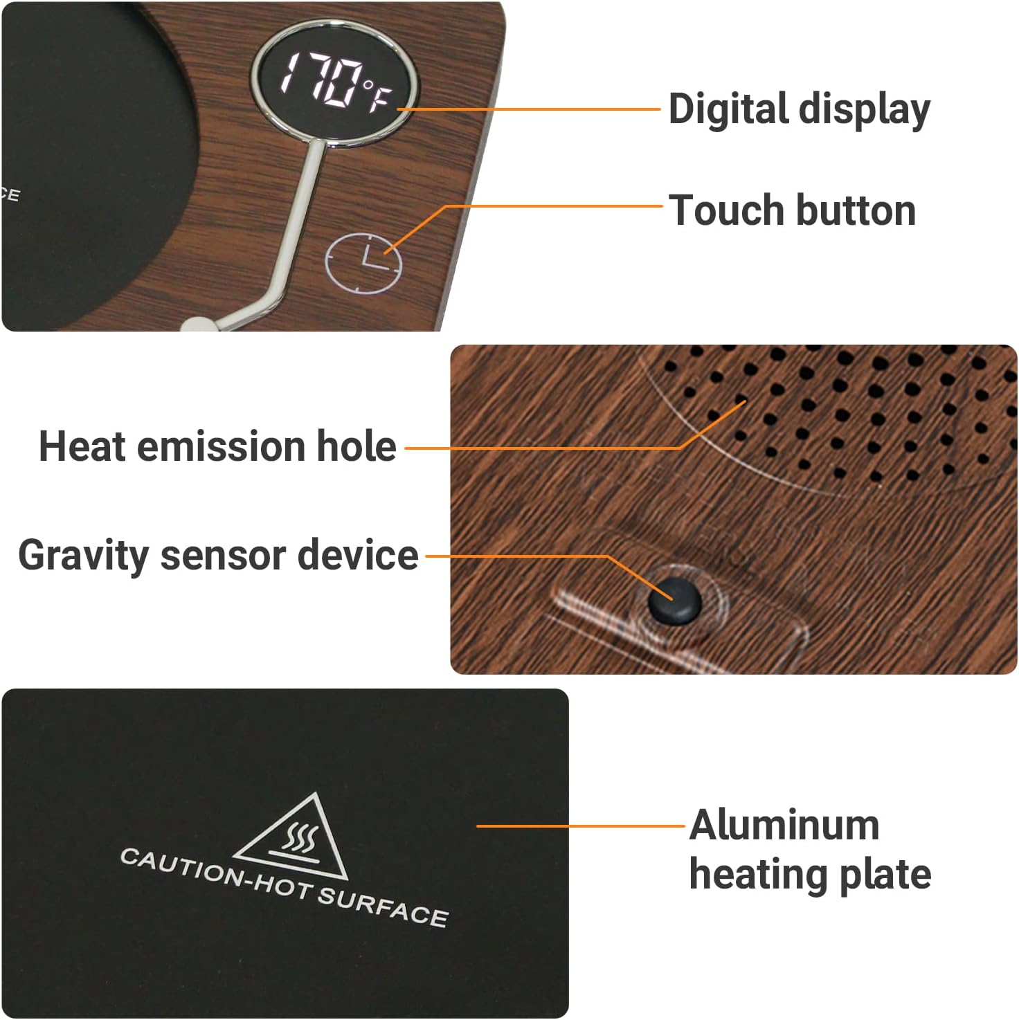 - 【Retro Gramophone Look 】The wood grain texture combined with the retro gramophone look will certainly attract you. CEROBEAR smart coffee warmer will be your best gift choice to show your care to your families, lover or friends on birthdays, Christmas, anniversaries or other special occasions.