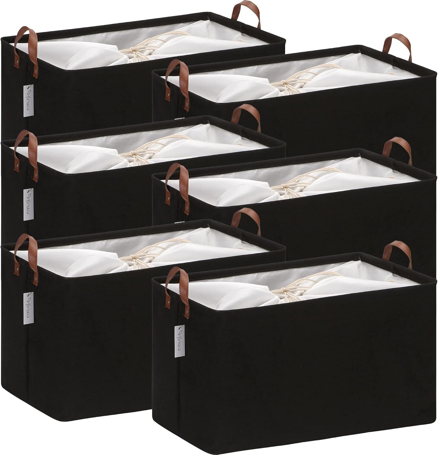 Hinwo 70L Extra Large Storage Bins, 6-Pack Closet Organizers and Storage, Foldable Clothes Storage Baskets with Handles, Containers for Clothing, Blanket, Comforters, Toys, Bedding (Black)