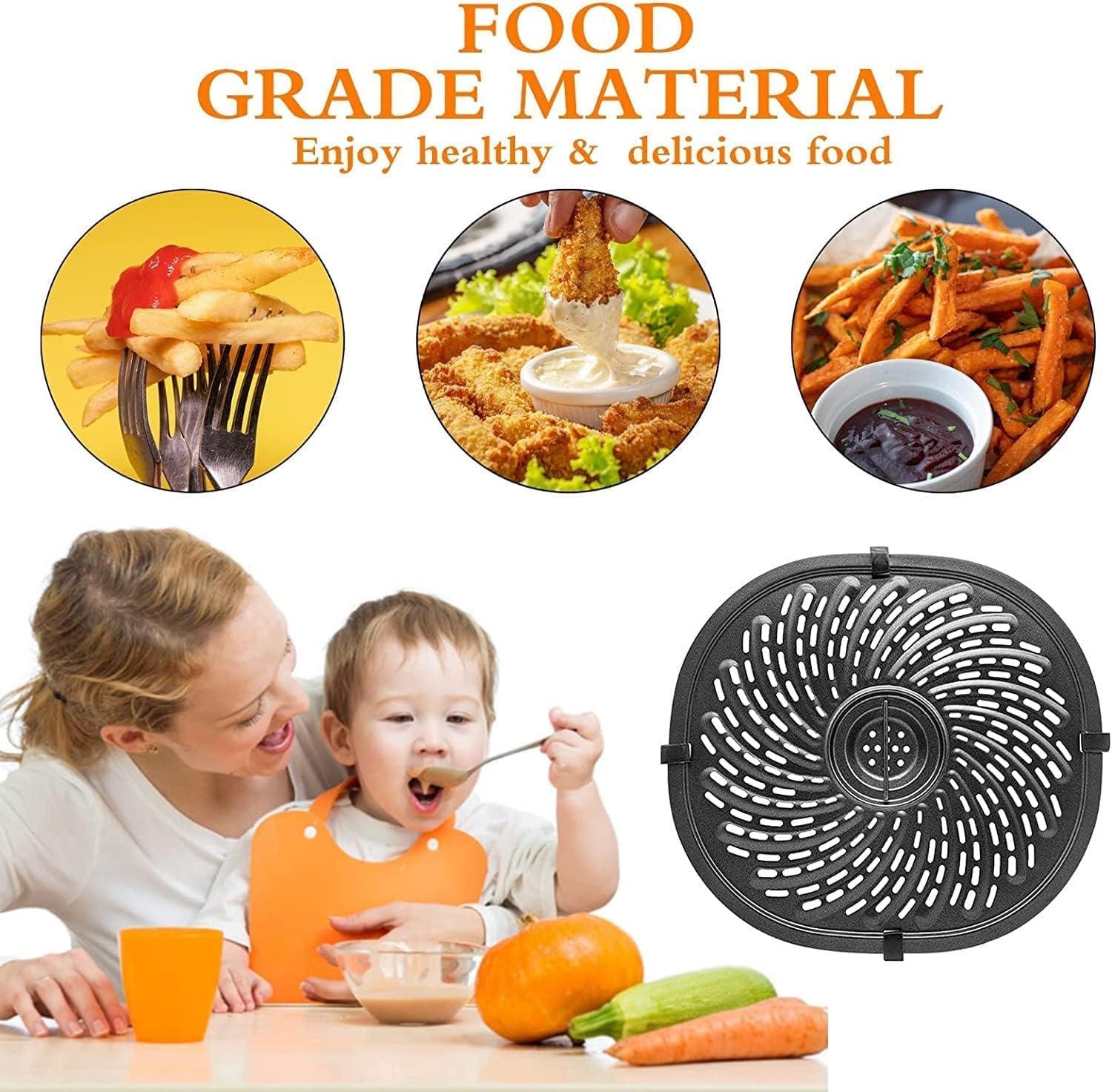 • What You Can Get: 1×Air fryer replacement grill pan, gifts: 1×Kitchen non-stick cleaning cloth, 4×Air fryer rubber bumper