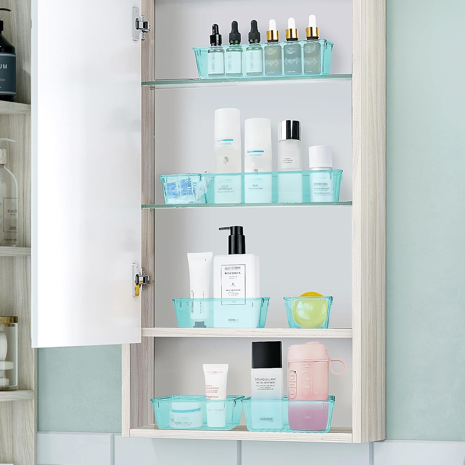 - 4 Combinations of Different Sizes: A set of cabinet organizer includes 25 storage bins of 4 different sizes. Includes: 9 x 6 x 2 inches (3pcs), 9 x 3x 2 inches(6pcs), 6 x 3 x 2 inches(8pcs), 3 x 3 x 2 inches(8cps). You can customize the combination to customize your own drawers.