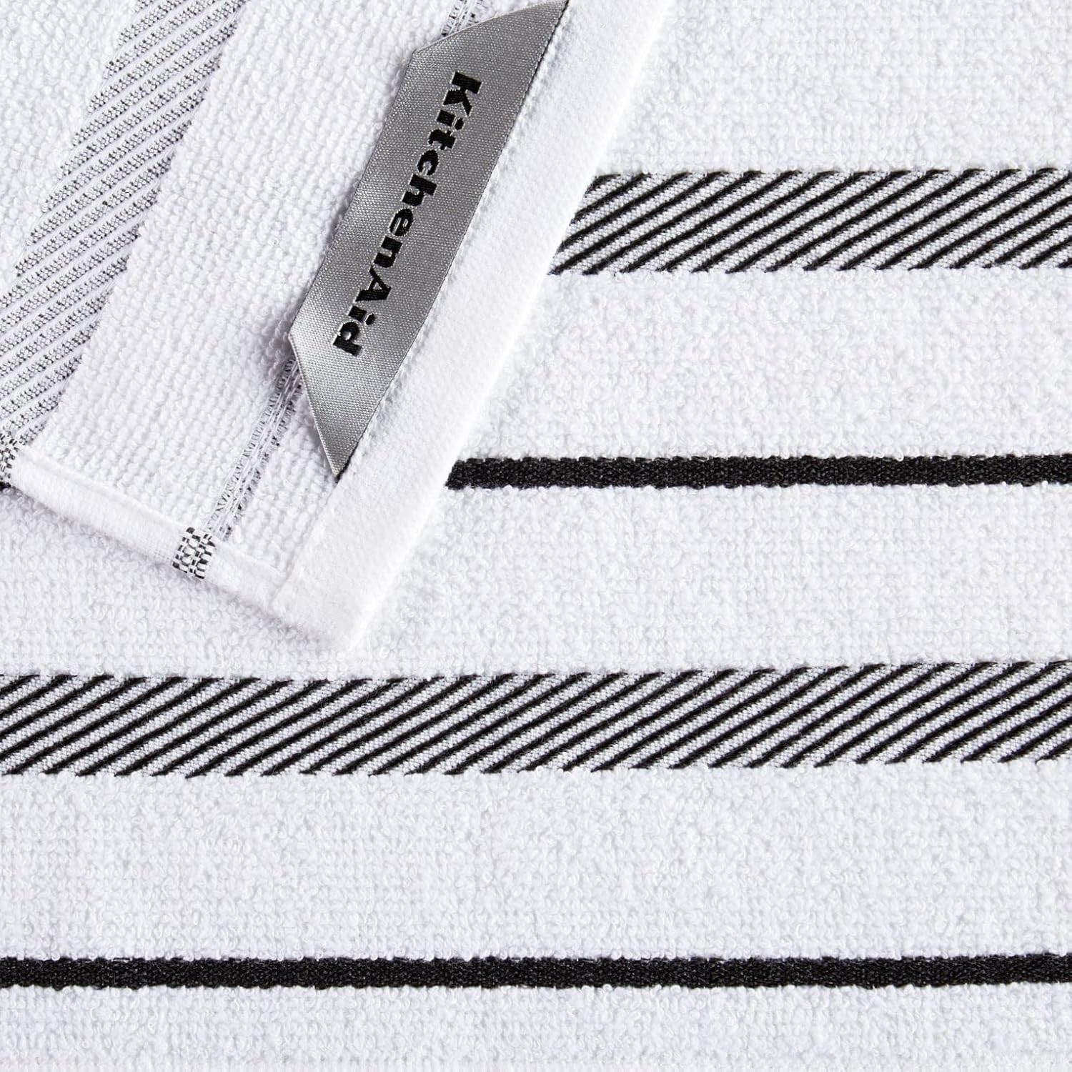 KitchenAid Albany Dishcloth 8 Pack Set, Matte Black/White, 12"x12"