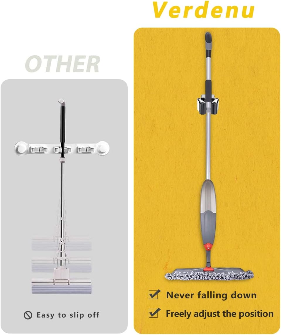 - Space-saving: Can be attached individually and placed individually. Once you clamp the broom handle into the triangular clip, it automatically adjusts to the different thicknesses of the handles and locks it without slipping.