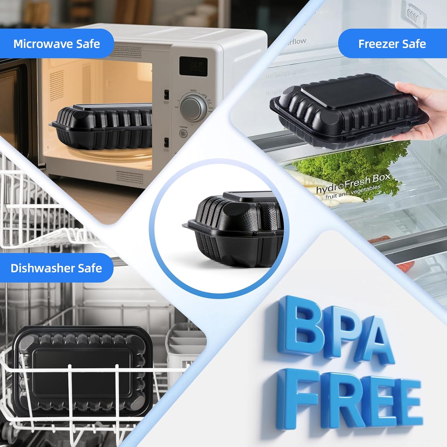 - Material Feature : BPA Free, Dishwasher Safe, Disposable, Food Grade, Freezer Safe, Microwave Safe, Reusable