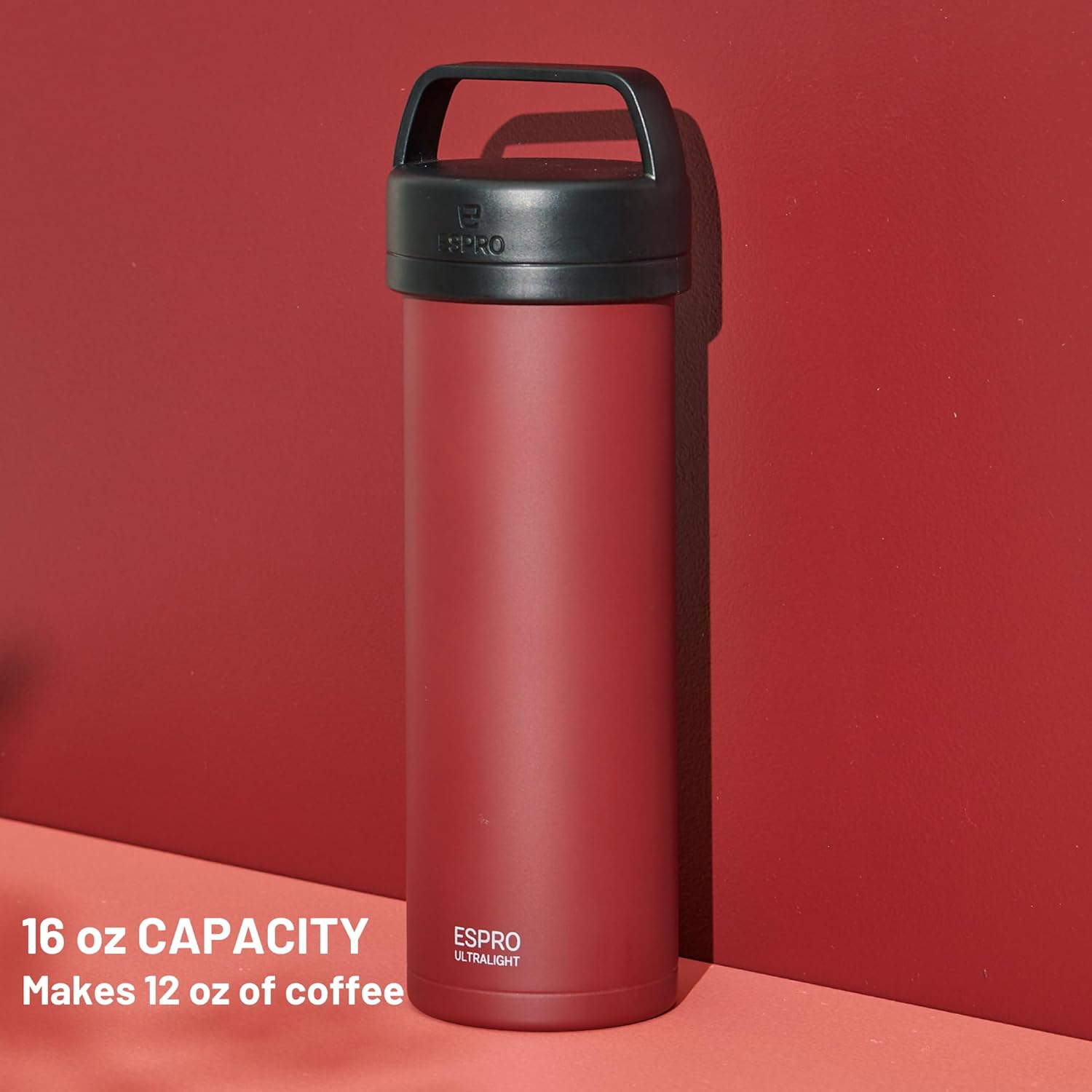 ESPRO P0 Ultralight French Press Coffee Maker for Travel, Vacuum Insulated Stainless Steel, 16 Ounces, Cranberry