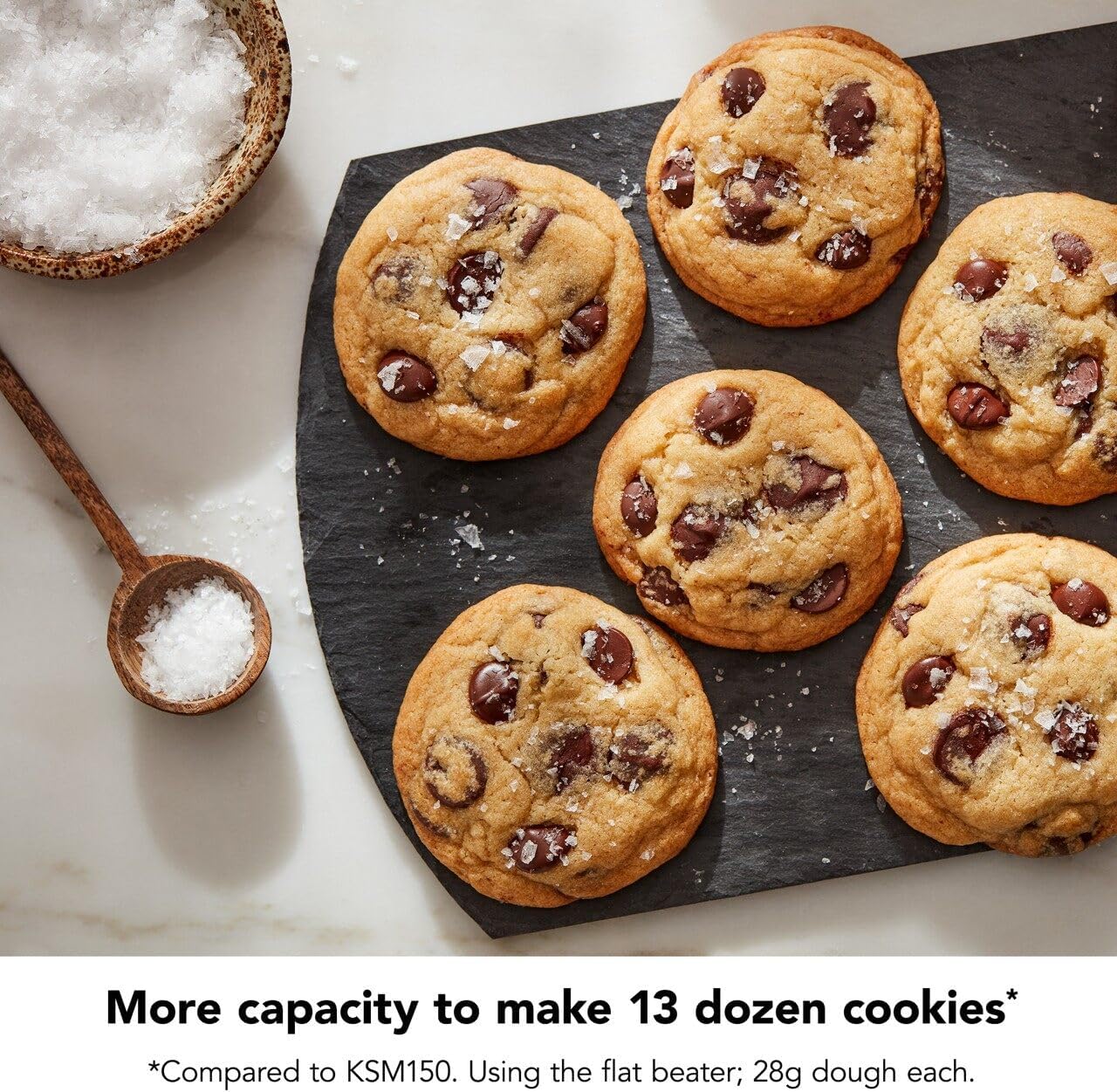 - With 7 quart capacity, you can easily mix 13 dozen cookies per batch, knead over 8.5 lbs of bread, or mash over 7.5 lbs of potatoes. Using the flat beater; 28g dough each.