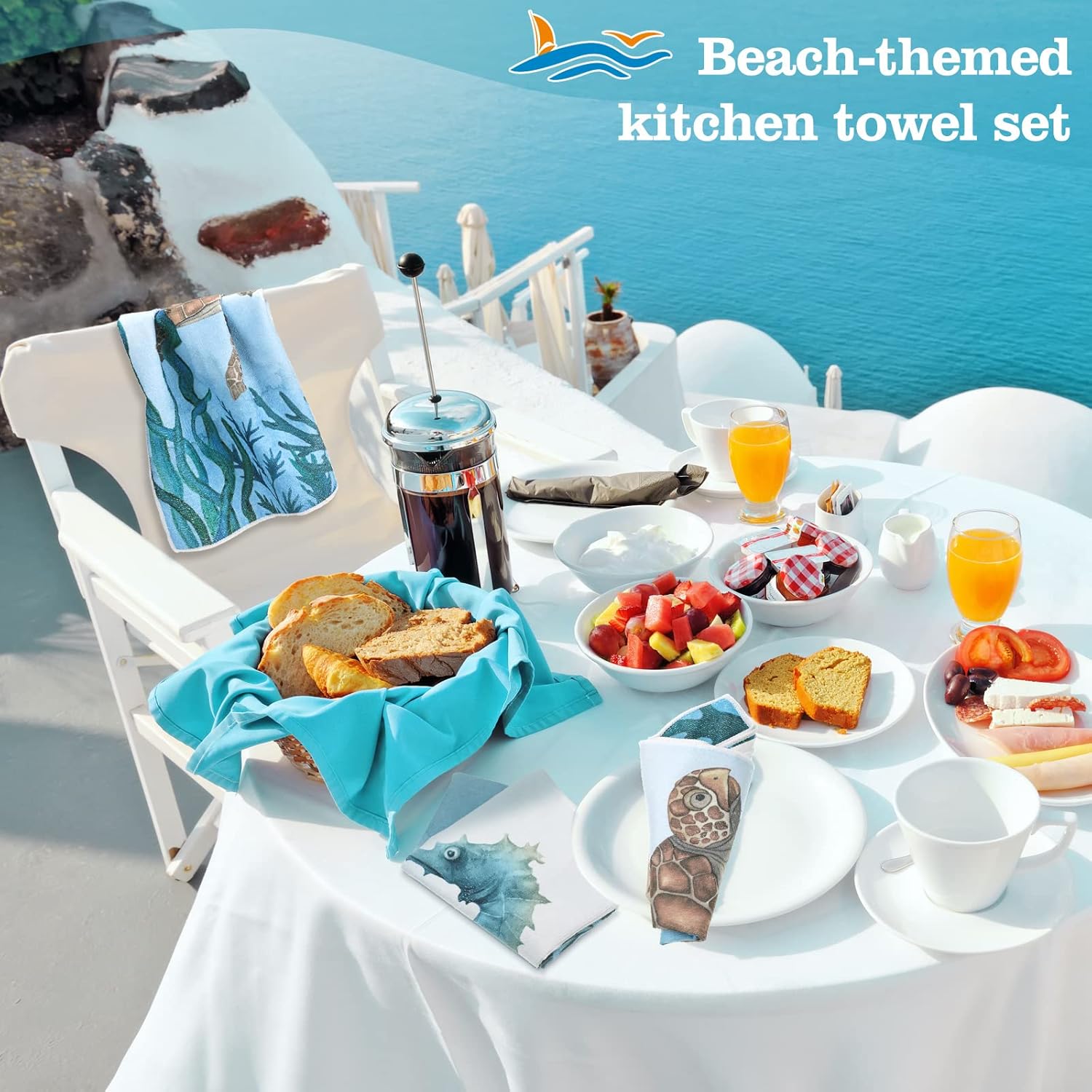 - What You Get: you will receive a total of 6 different styles of beach themed kitchen towels, with enough quantity and novelty styles to meet your daily needs for cleaning kitchen dishes, and you can also share them with your family and friend