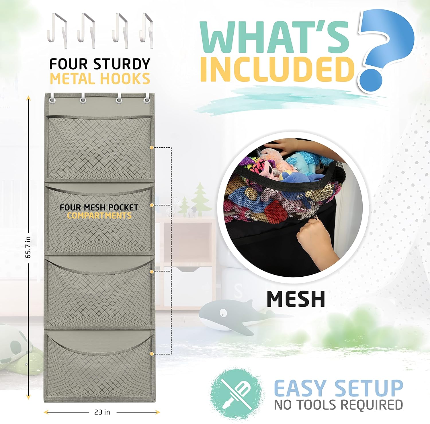 - 🧸 CONVENIENT STUFFED ANIMAL STORAGE - The perfect stuffed animal organizer to easily store and organize your favorite toys in our over the door storage unit; Easy to setup, durable, and allows kids convenient access to their toys; Equipped with breathable mesh pockets keeping your stuffies fresh and clean