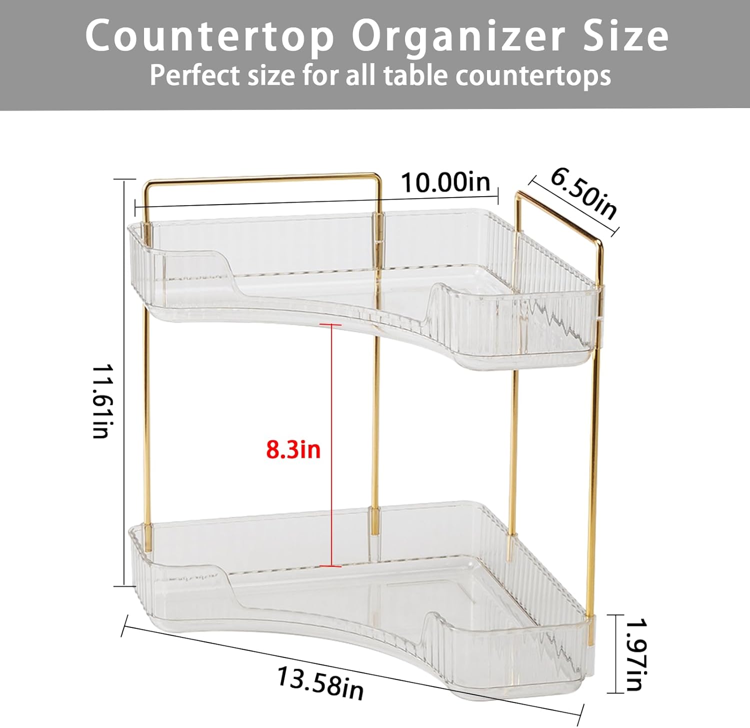 - Multiple Sizes for Any Space:The 2-tier design measures 13.6 x 10 x 12.2 inches, while the 3-tier version measures 13.6 x 10 x 17.5 inches. Its sleek and practical design fits perfectly in bathroom corners, kitchen counters, and more, combining aesthetics with functionality
