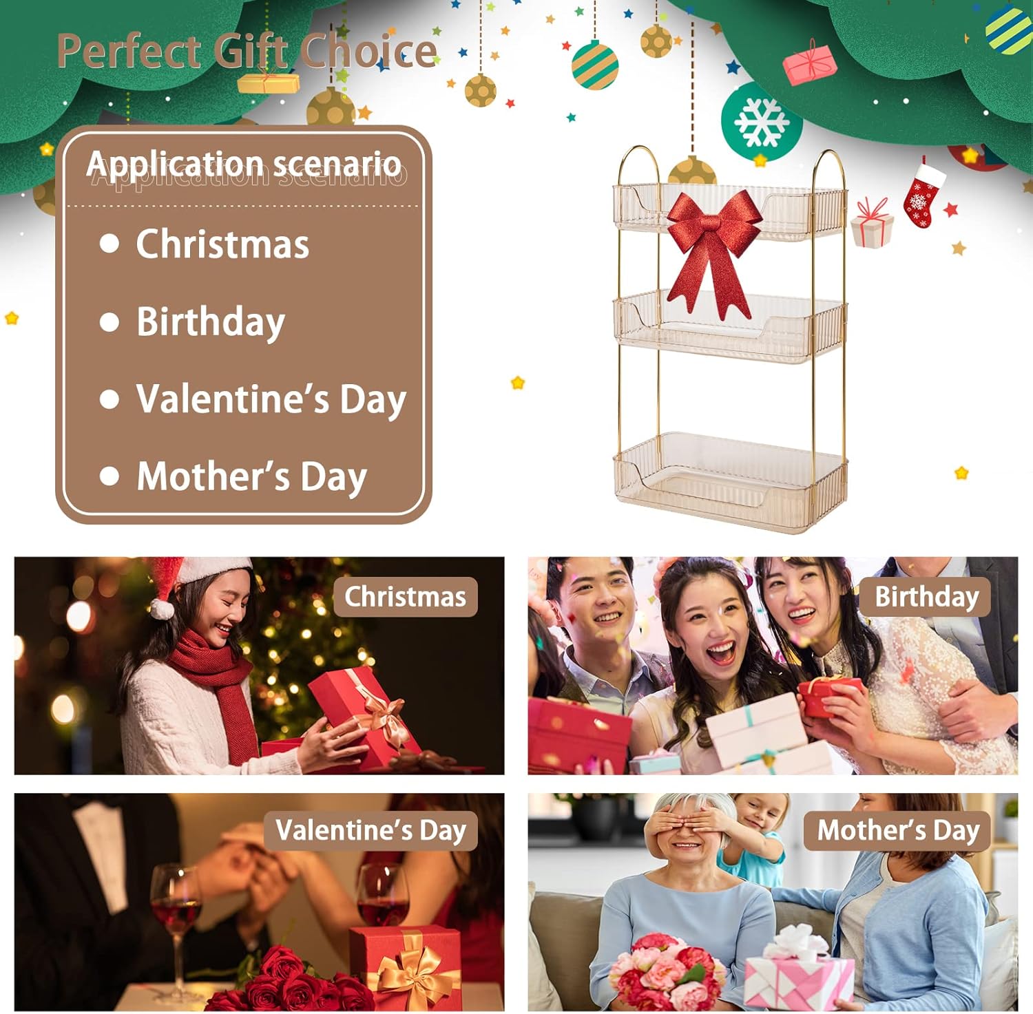 • Large Capacity: This organizer 2 tier measures 11.81''D x 6.7''W x 13''H, 3 tier measures 11.81''D x 6.7''W x 18.9''H (Please measure your countertop space before purchase). Perfect for organizing skin care products, cosmetics, perfume or anything you like, save space and increase storage capacity