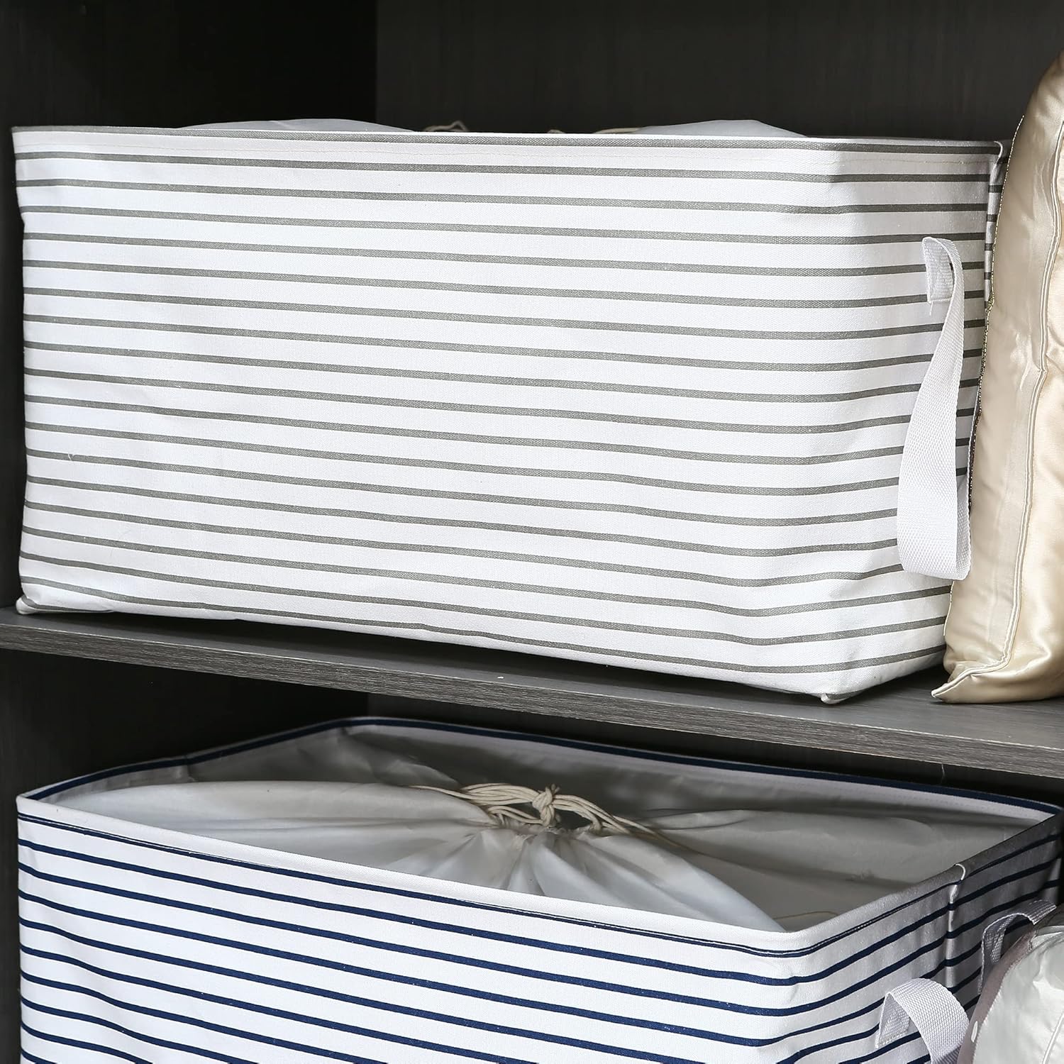 Hinwo 102L XXL Storage Bins, 2-Pack Closet Organizers and Storage, Foldable Clothes Storage Baskets with Handles, Containers for Clothing, Blanket, Comforters, Toys, Bedding (Gray Stripe)