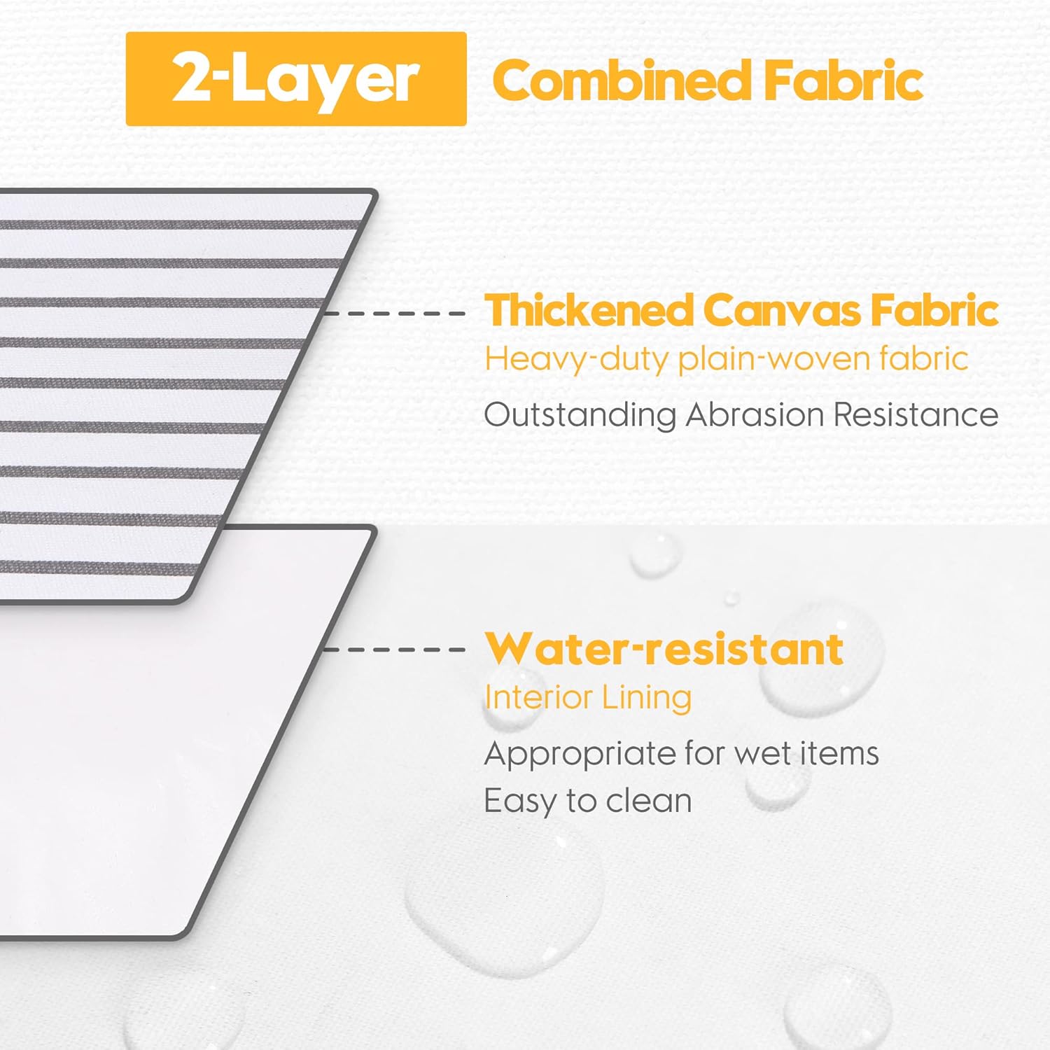 • Sturdy & Waterproof Material – Made of thickened canvas fabric with a layer of PE coating lining, the basket provides high tear resistance while the lining is waterproof which allows you to store wet clothes or other moist items