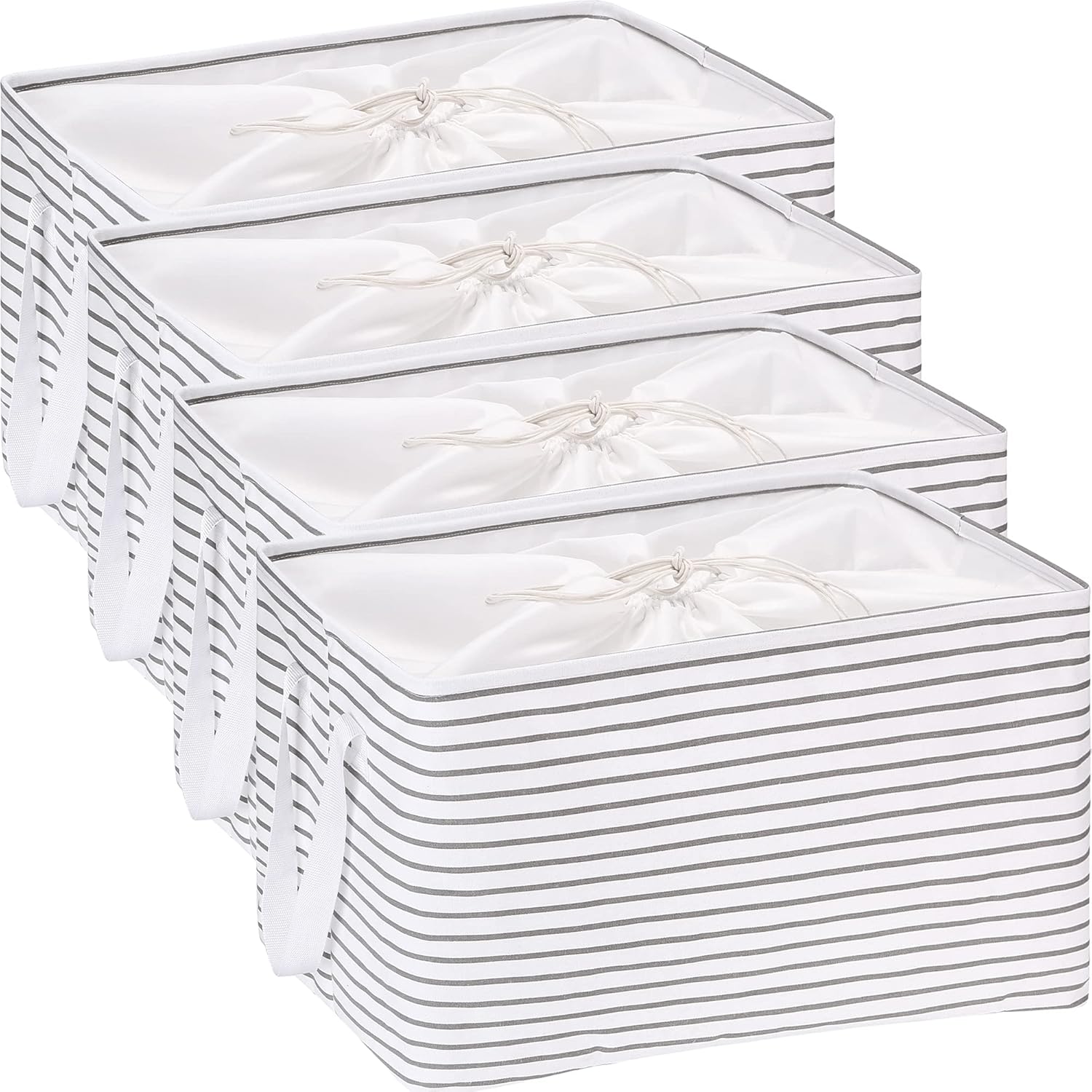 Hinwo 102L XXL Storage Bins, 4-Pack Closet Organizers and Storage, Foldable Clothes Storage Baskets with Handles, Containers for Clothing, Blanket, Comforters, Toys, Bedding (Gray Stripe)