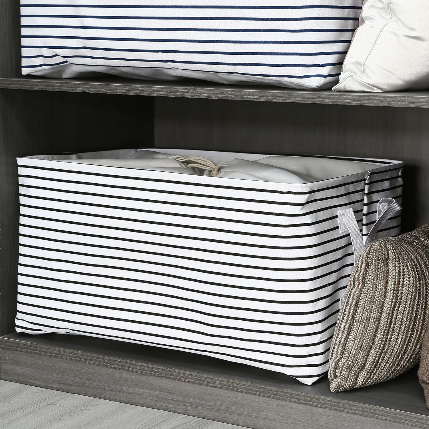 Hinwo 102L XXL Storage Bins, 4-Pack Closet Organizers and Storage, Foldable Clothes Storage Baskets with Handles, Containers for Clothing, Blanket, Comforters, Toys, Bedding (Black Stripe)