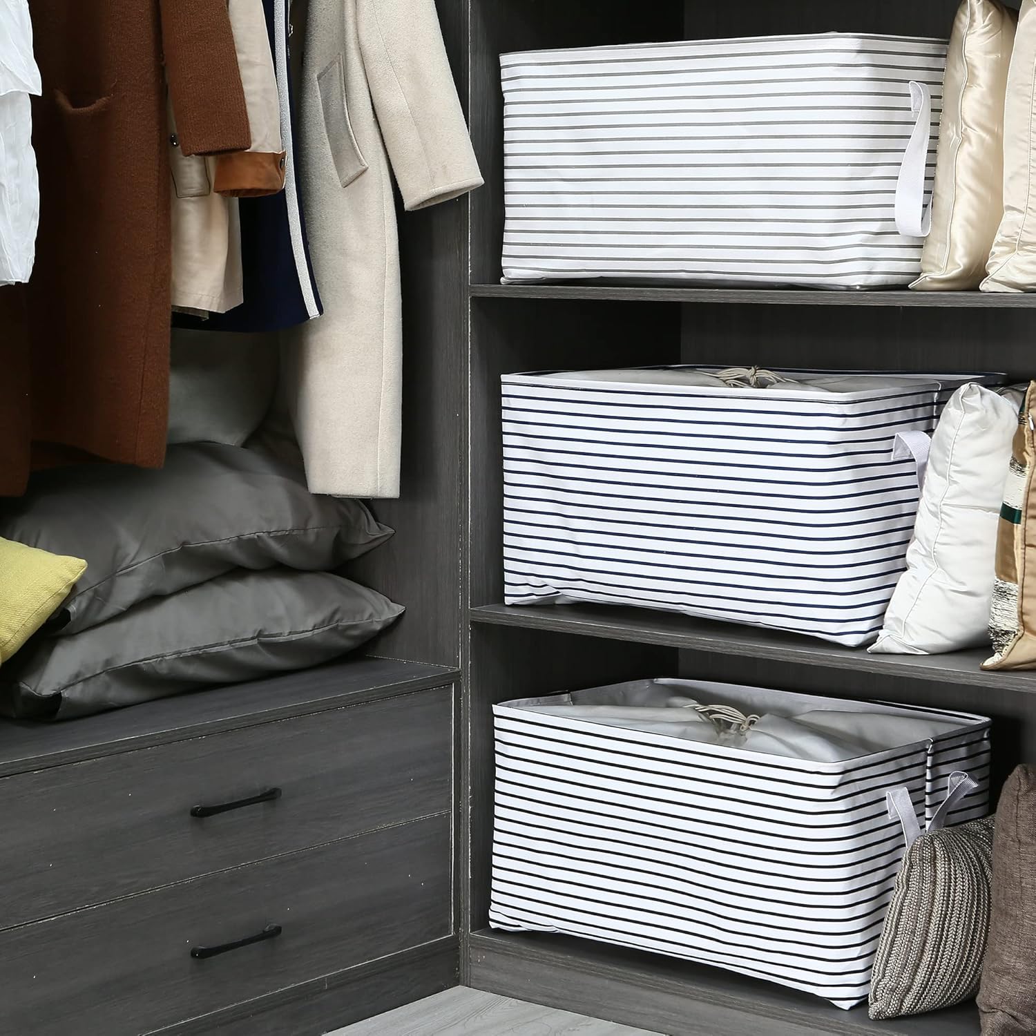 Hinwo 102L XXL Storage Bins, 2-Pack Closet Organizers and Storage, Foldable Clothes Storage Baskets with Handles, Containers for Clothing, Blanket, Comforters, Toys, Bedding (Black Stripe)